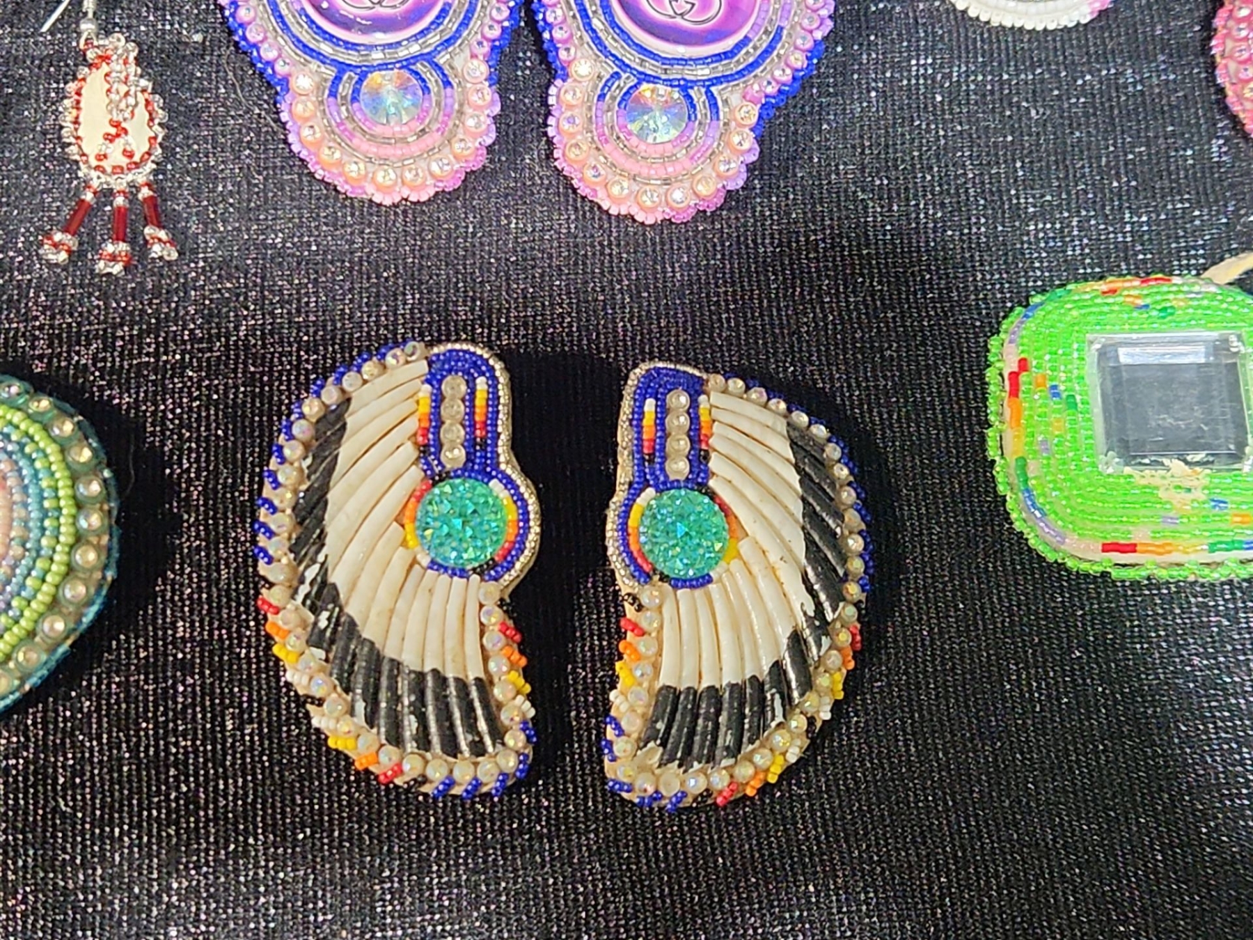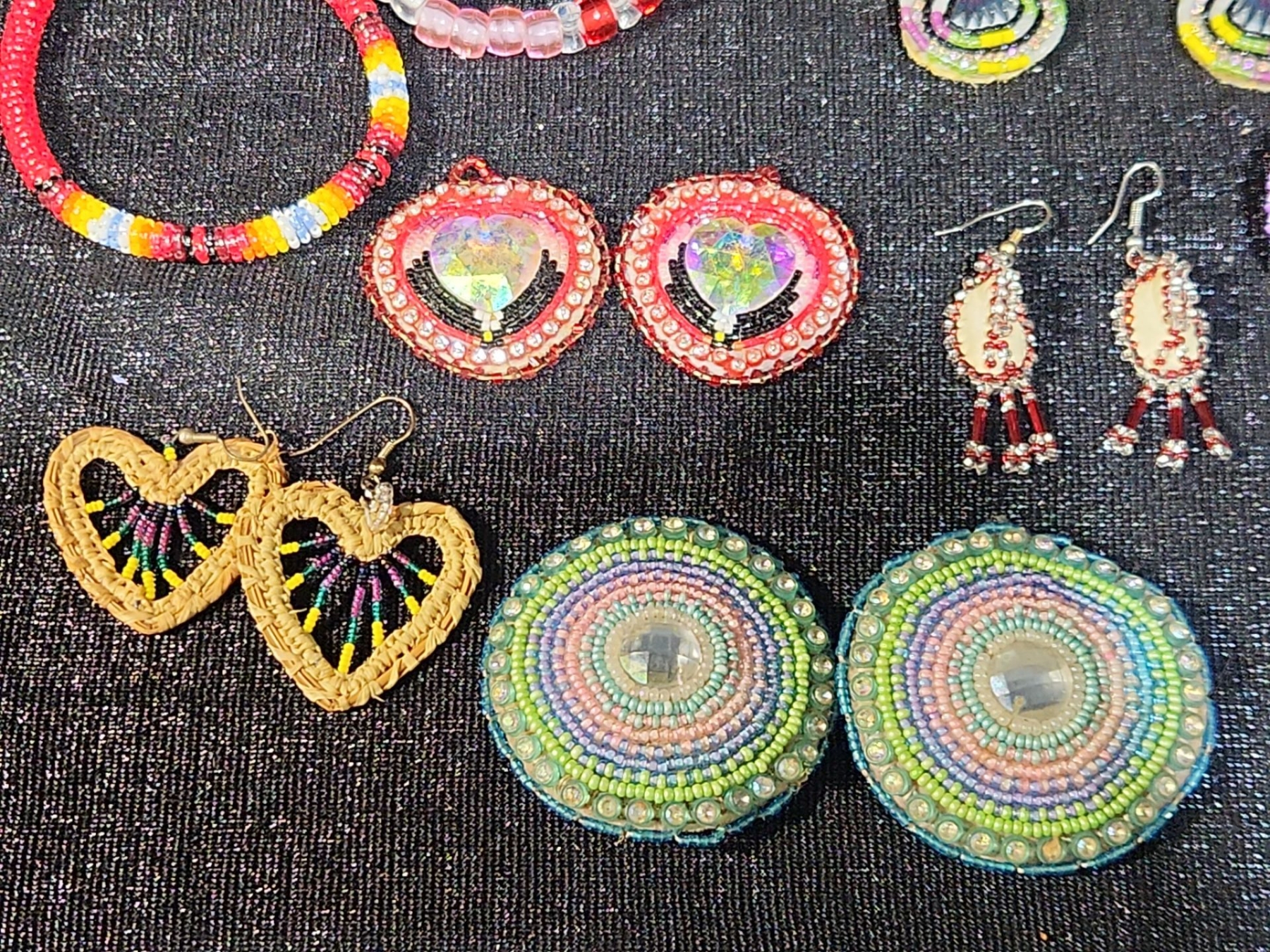 This lot features a Colorful Beaded Earrings Collection, beautifully crafted in traditional Indigenous style. Each pair showcases vibrant beadwork, intricate patterns, and careful hand-stitched detailing that reflects cultural artistry and skilled craftsmanship. The assortment includes a variety of colors, shapes, and designs, making it a striking collection for wearers and collectors alike.