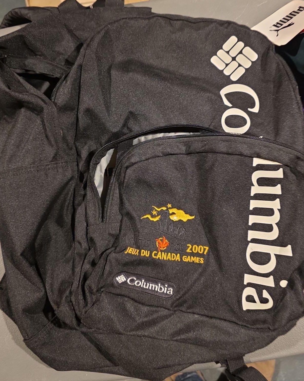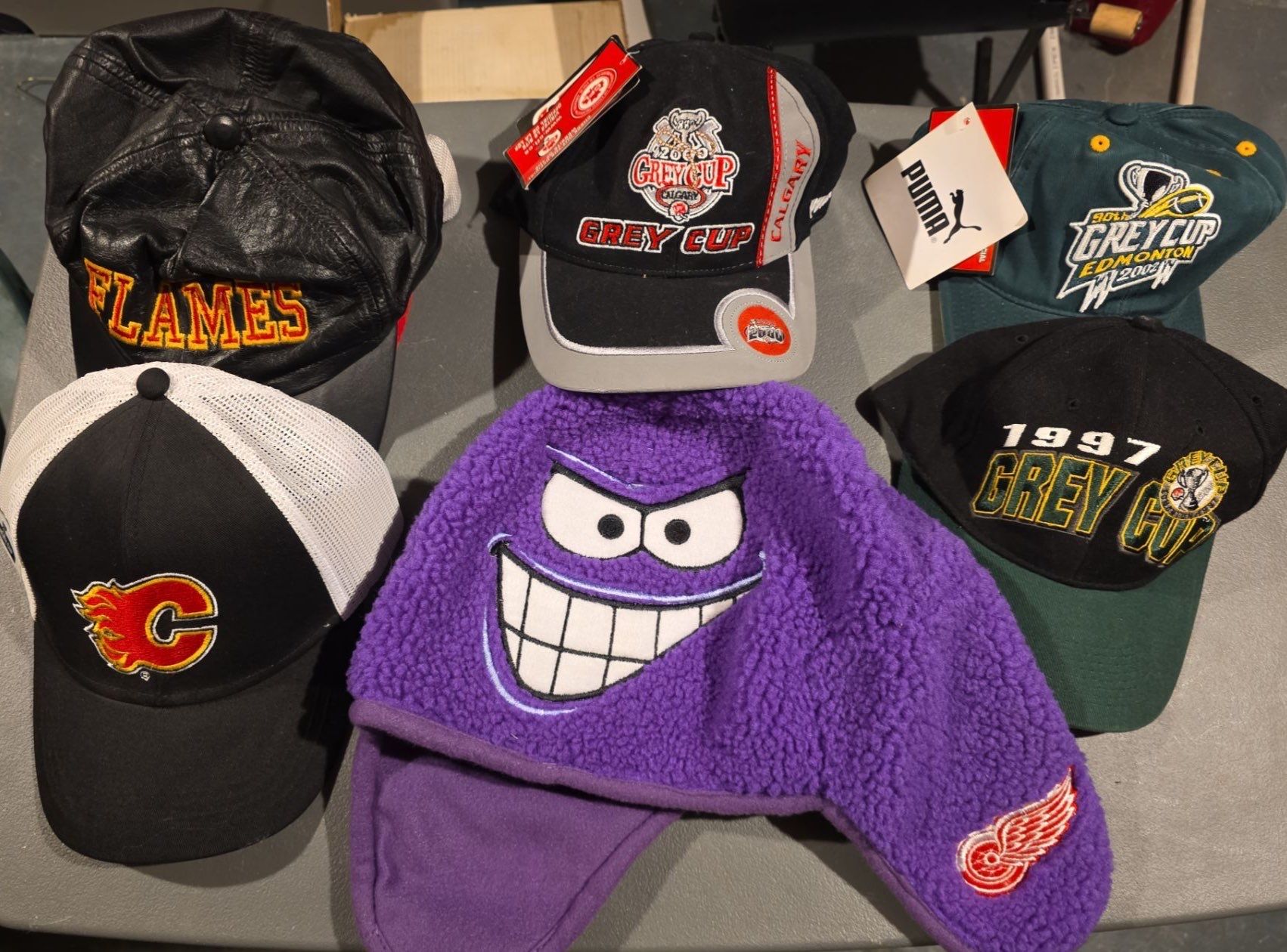 Columbia Back Pack Filled W/Sports Hats- Grey Cup, Detroit Redwings, Calgary Flames