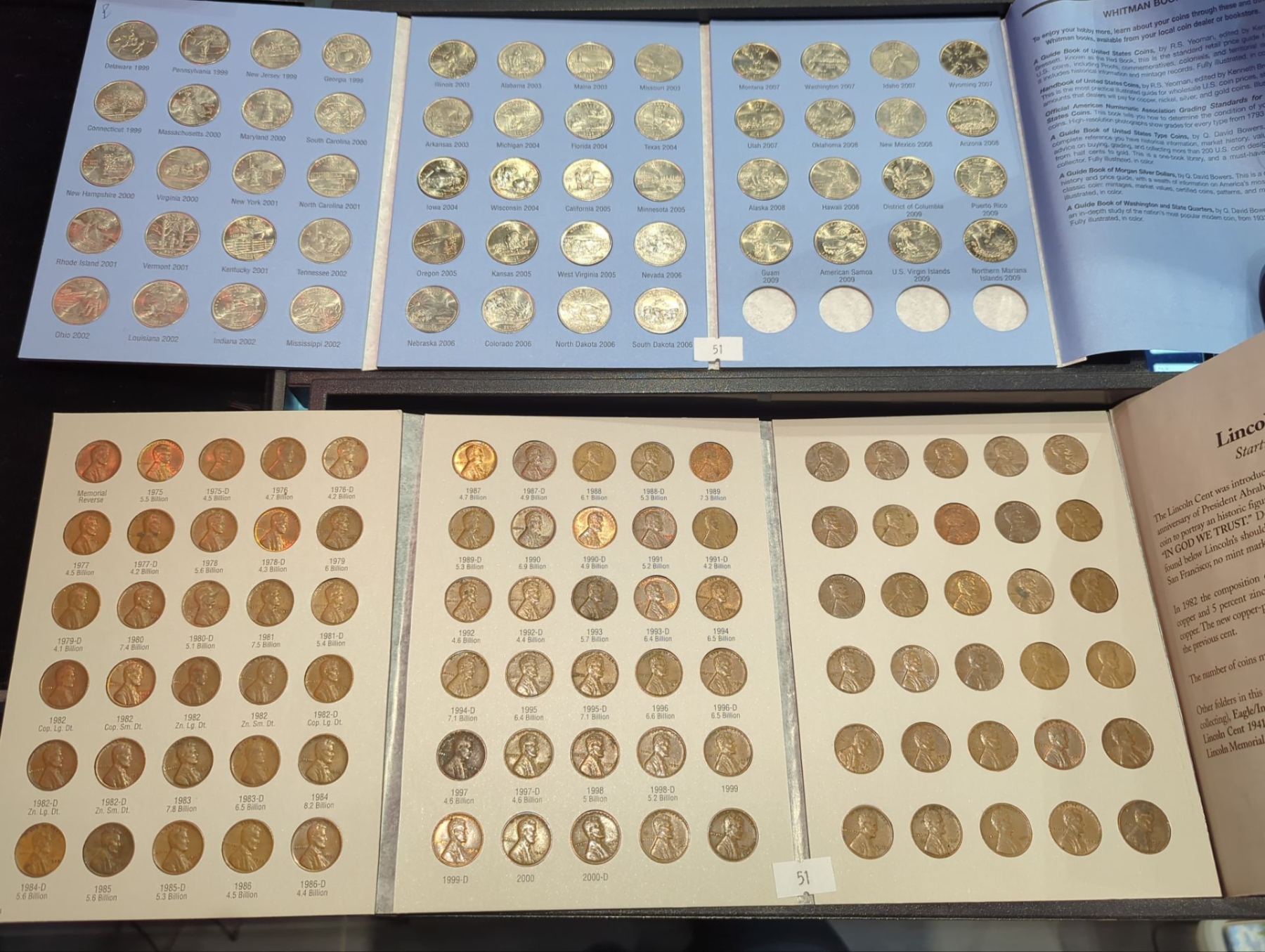 Completed Folders of Statehood Quarters and Lincoln Pennies 1911-1958