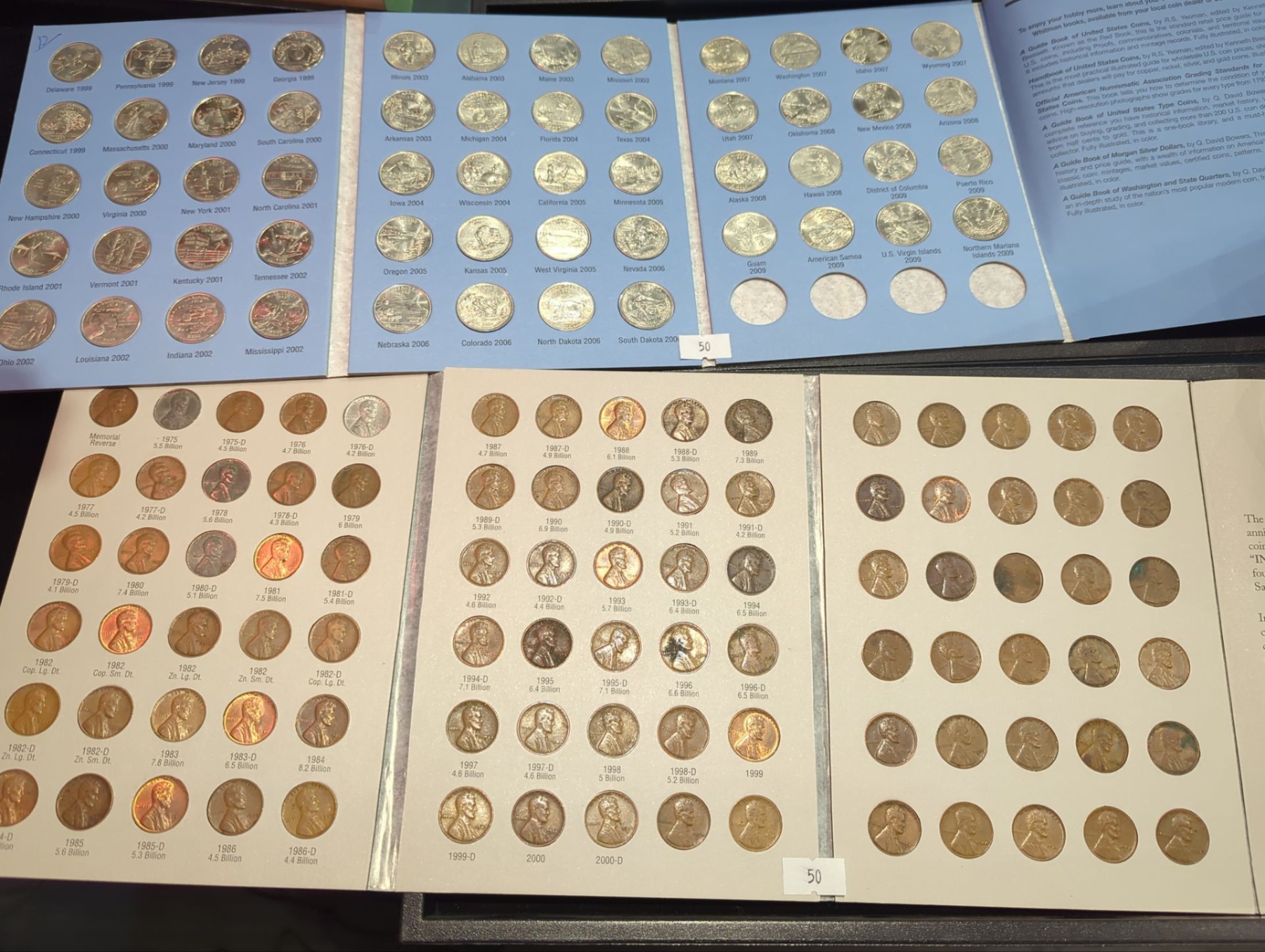 Completed Folders of Statehood Quarters and Lincoln Pennies 1926-1958