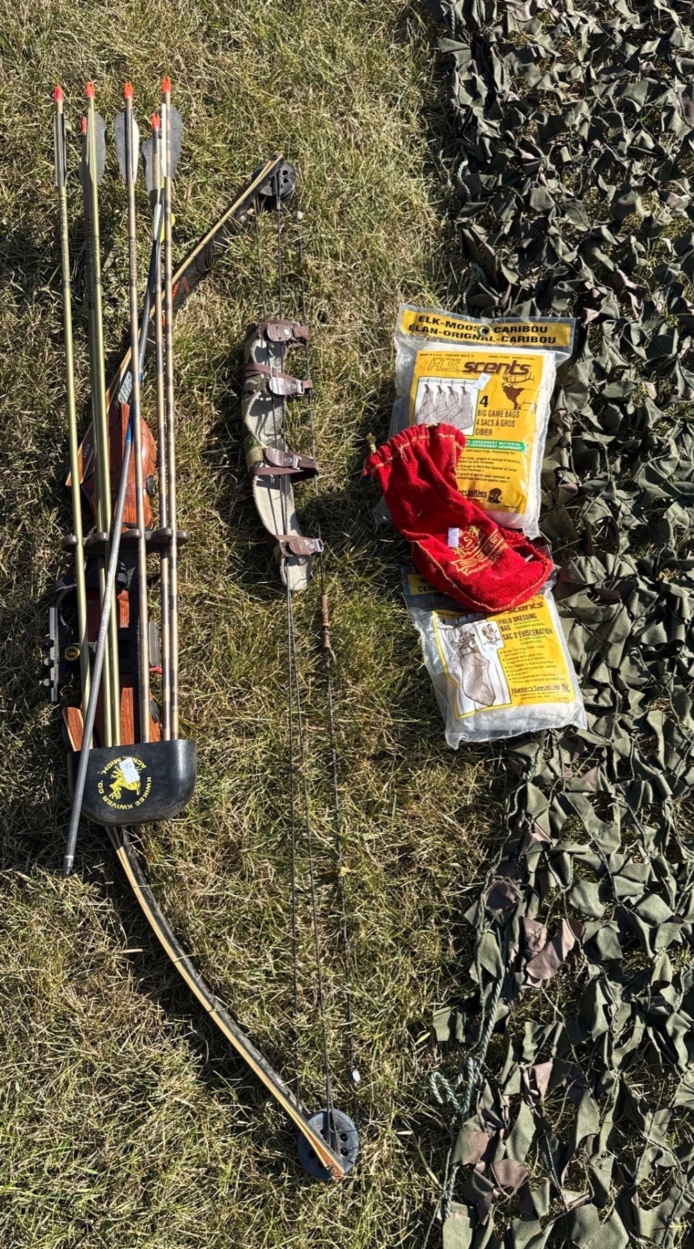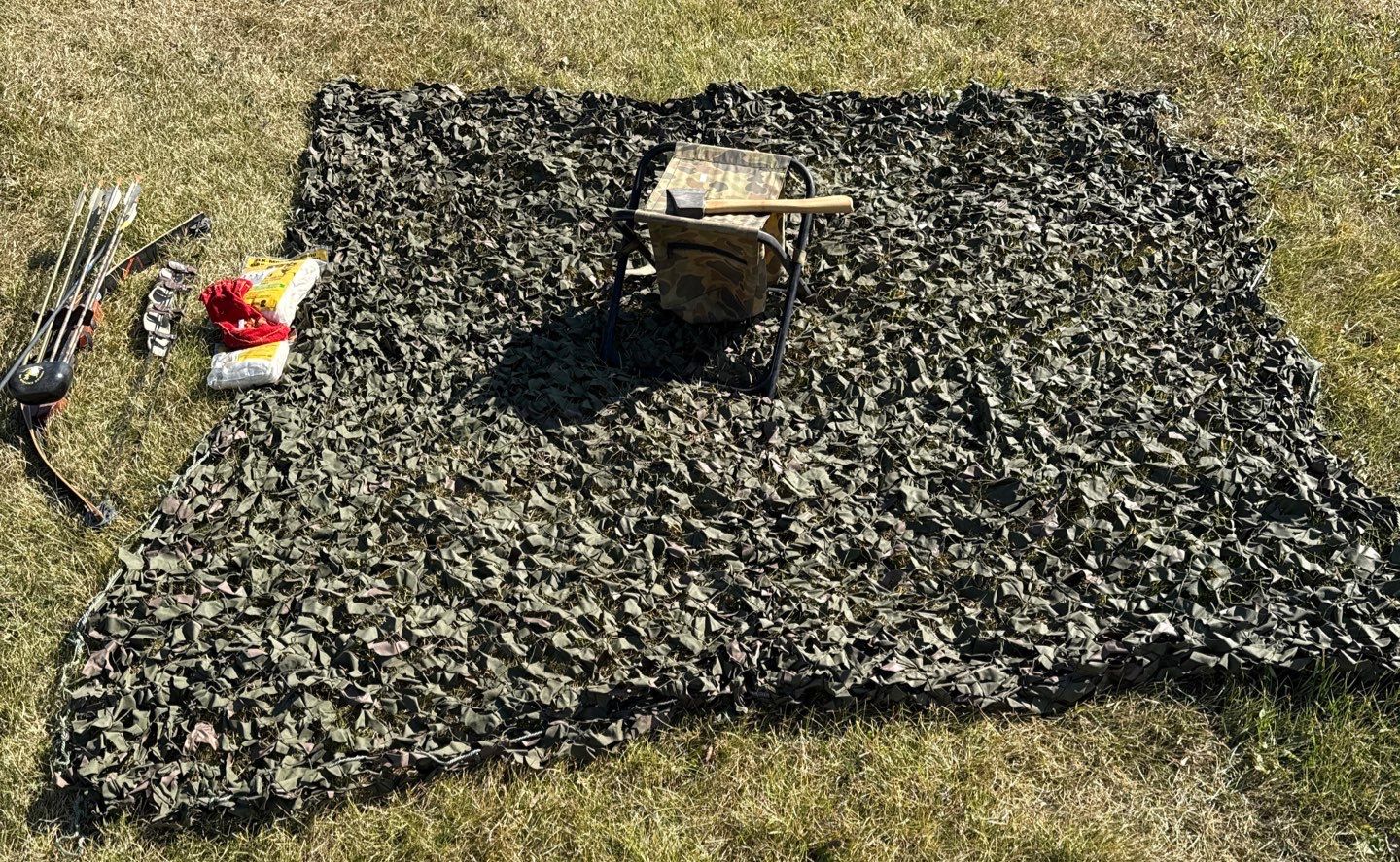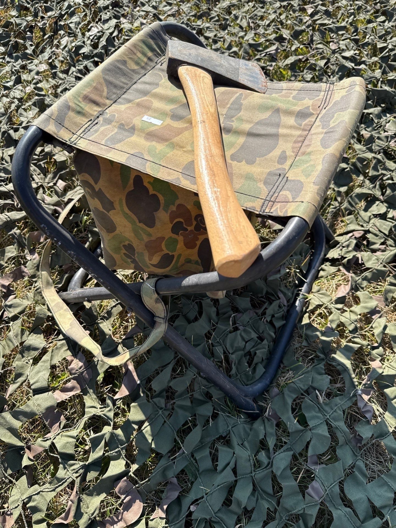 Compound Bow Axe Chair Camo Net And Game Bags And bag of Broad heads