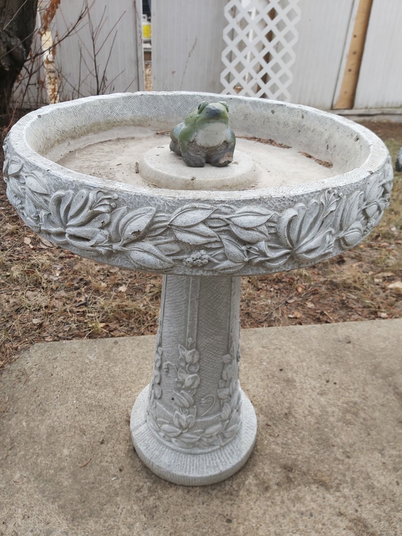 Concrete Bird Bath 22" Diameter x 27" High (Base has some Cracks)