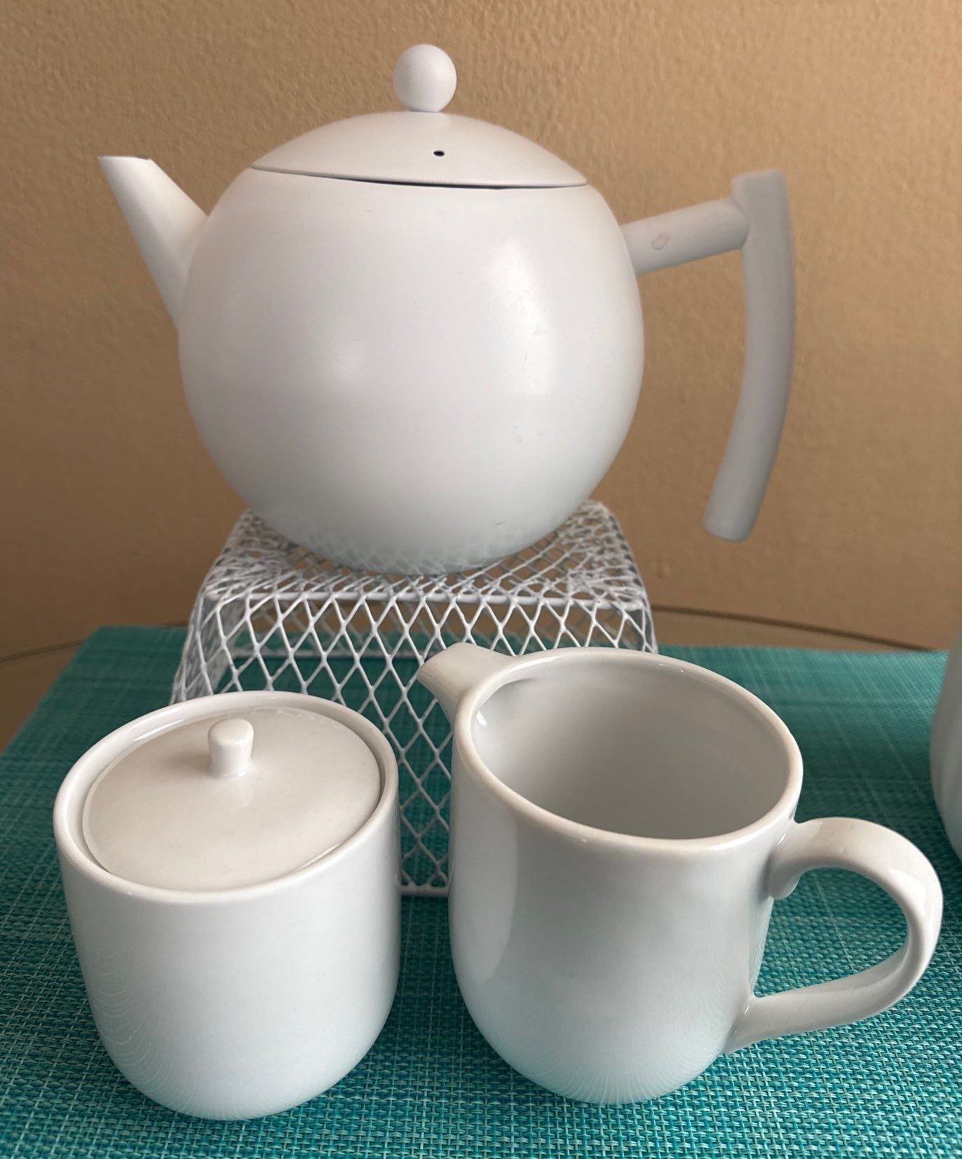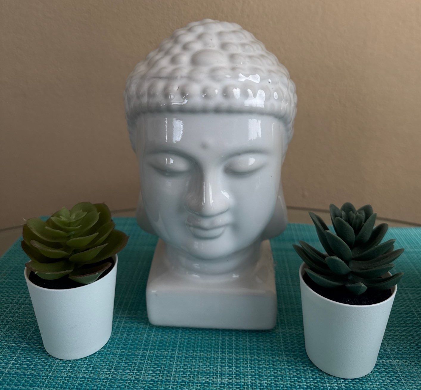 Contemporary White Home Decor Items Buddah Head, Tea pot, Mini Faux Plants & Large Vase