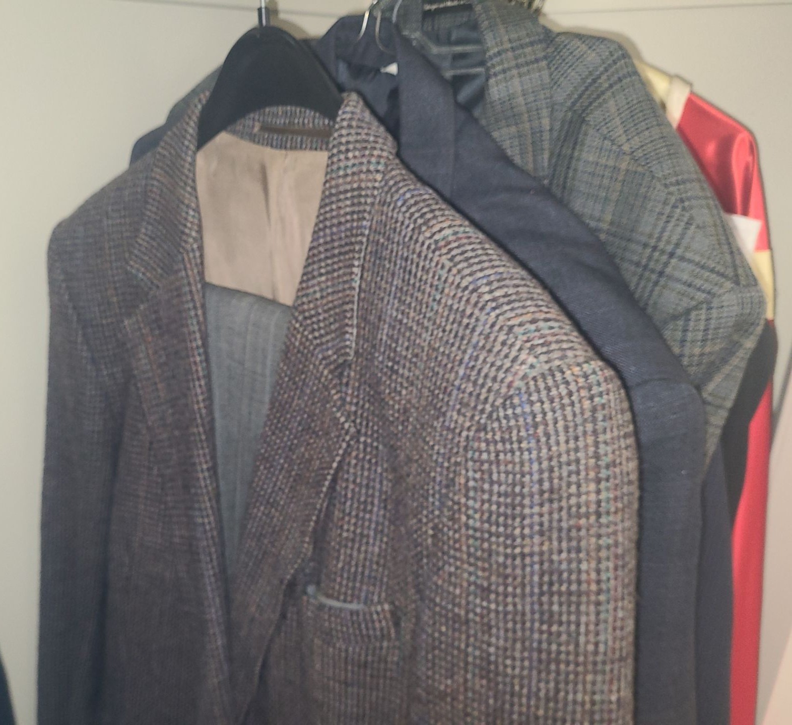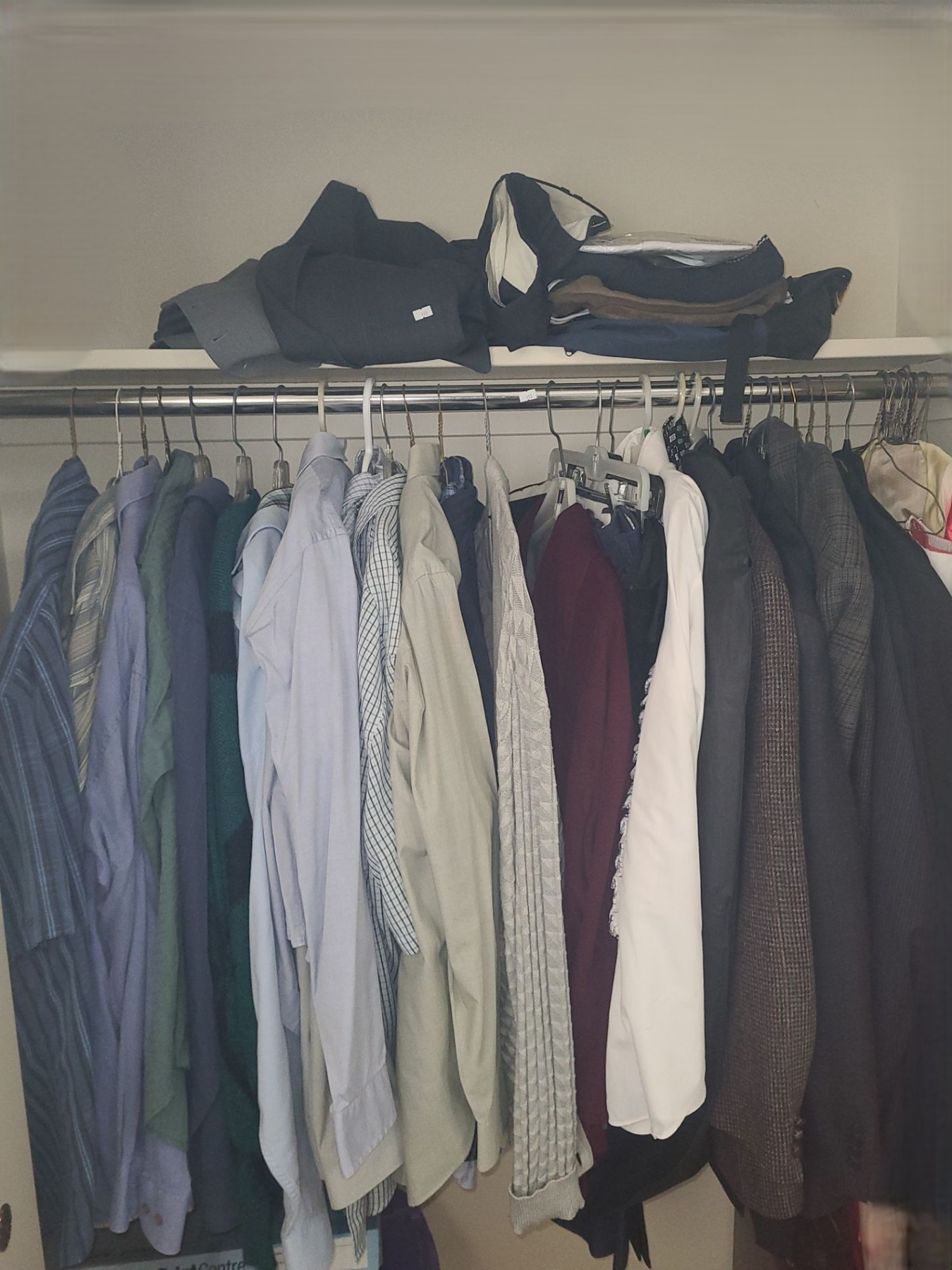 Contents of Closet Various Sizes Including: Shirts Sizes L/ XL/ XXL, Suit Jackets, and More!