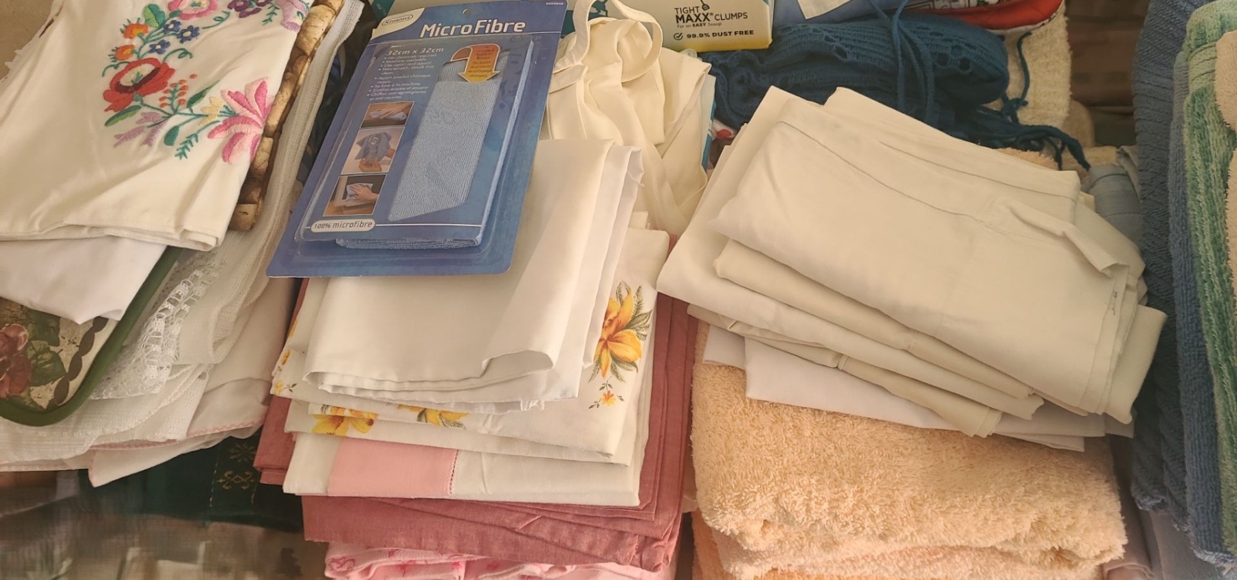 Contents of Linen Closet Including: Towels, Tea Towels, Scarves and More!