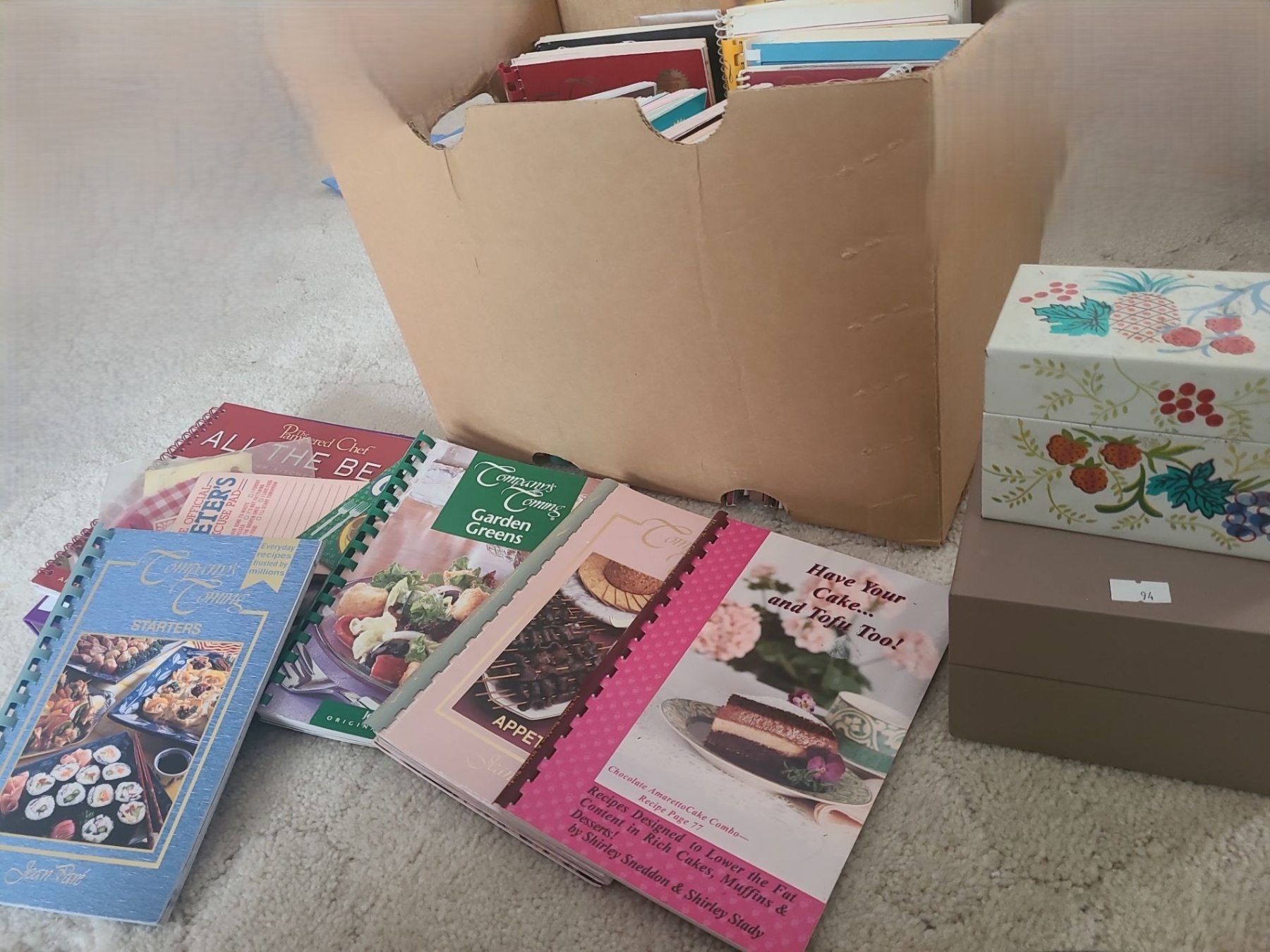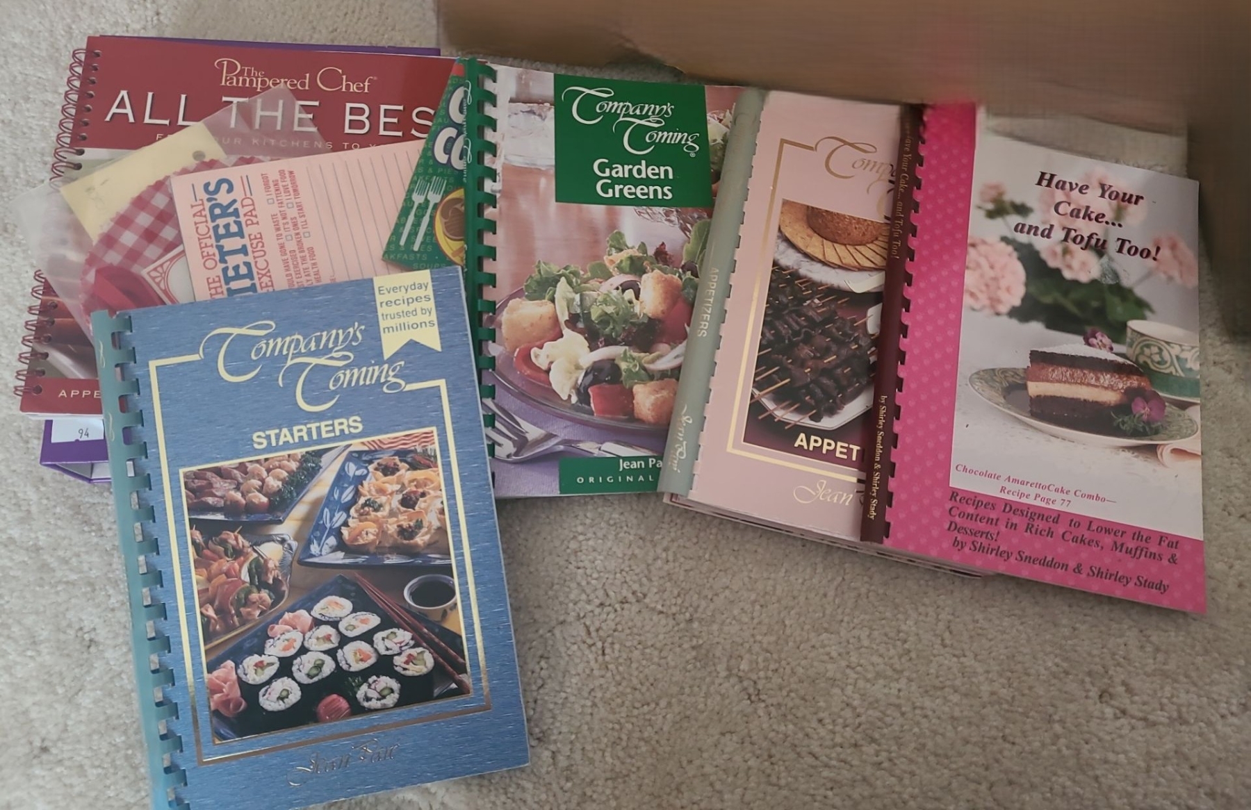 Cookbook Assortment by Company's Coming, Pampered Chef "All The Best" and 2 Recipe Boxes (Full)