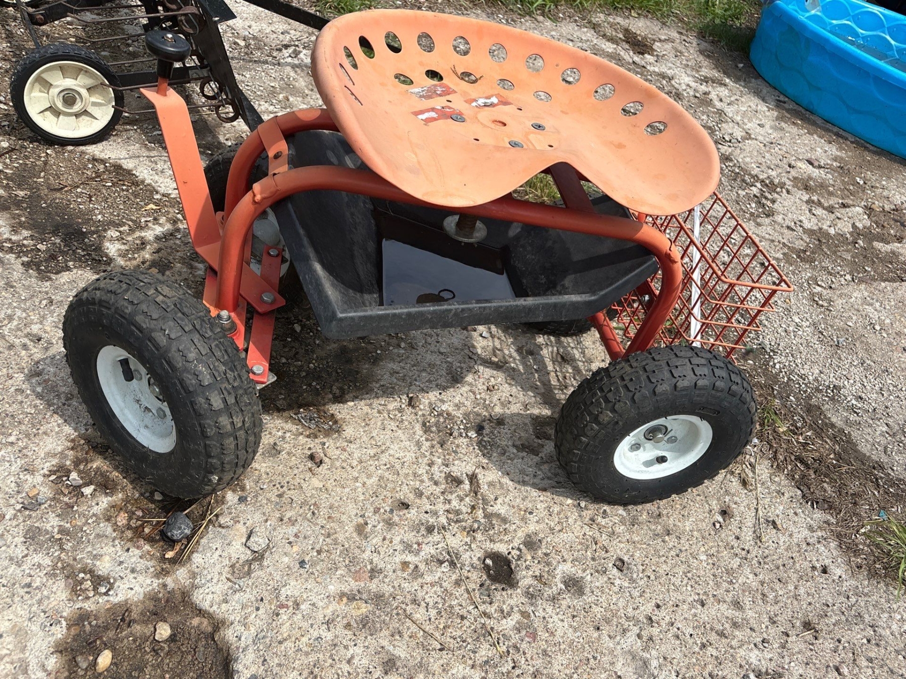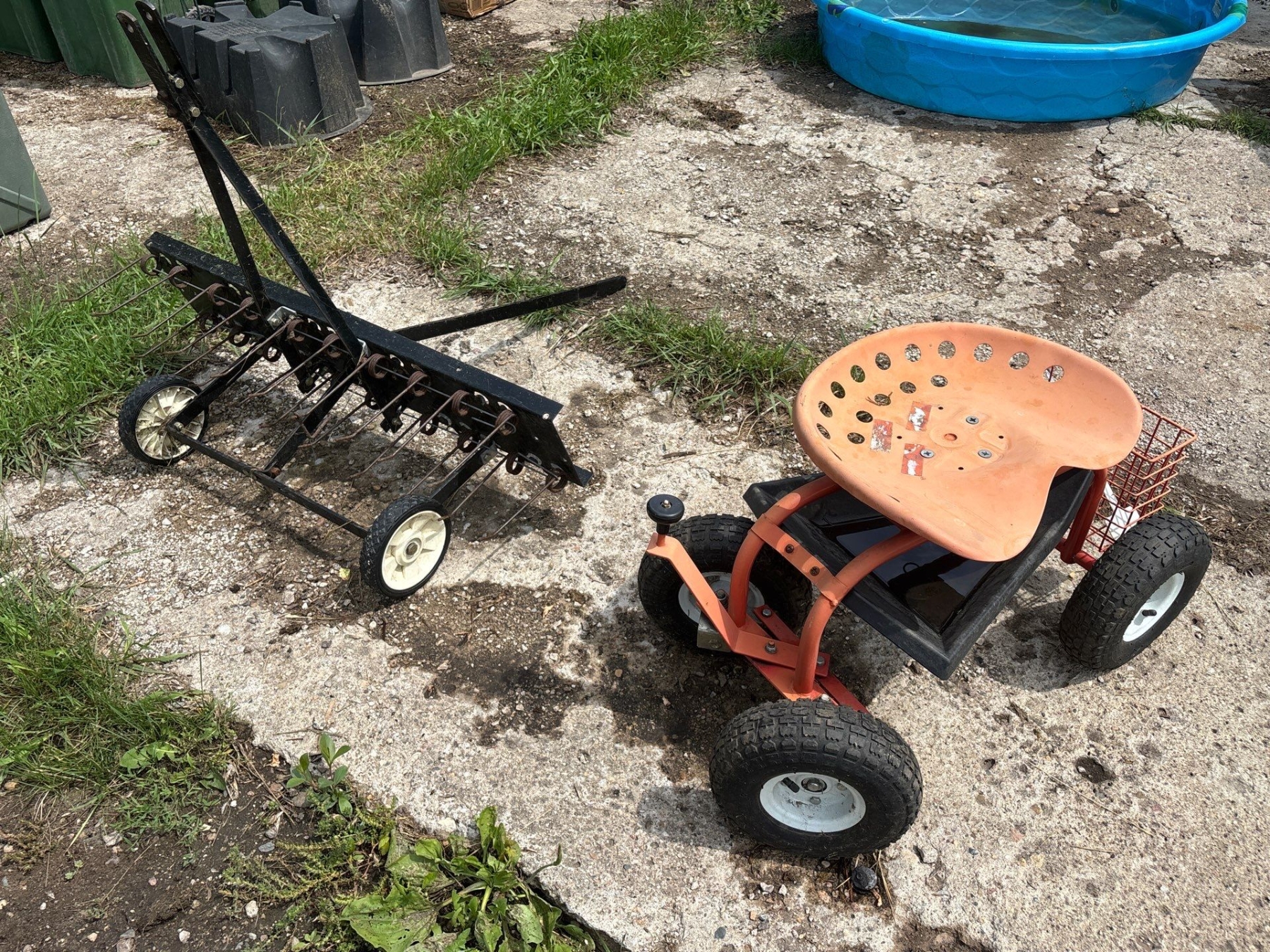 Cool Looking Garden Cart On Wheels With A Tractor Seat 42" Rake Tow behind garden Tractor