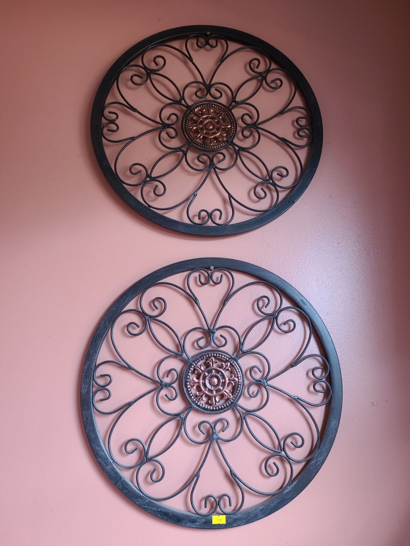 Copper Color Plaque Wall Art w/ Cat 16 X 20 and Pair of Decor Circles 19 " Diameter