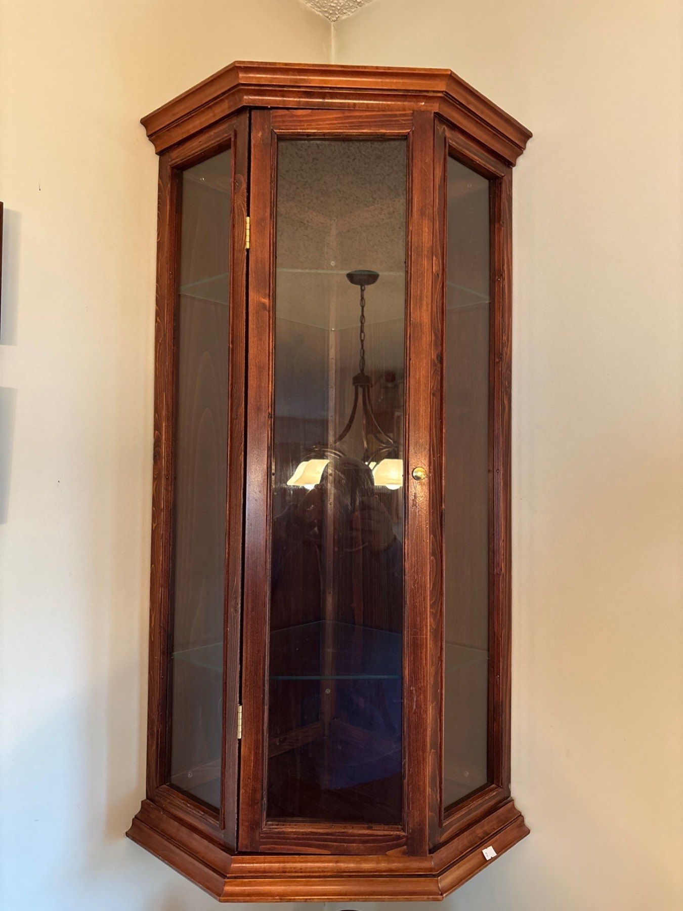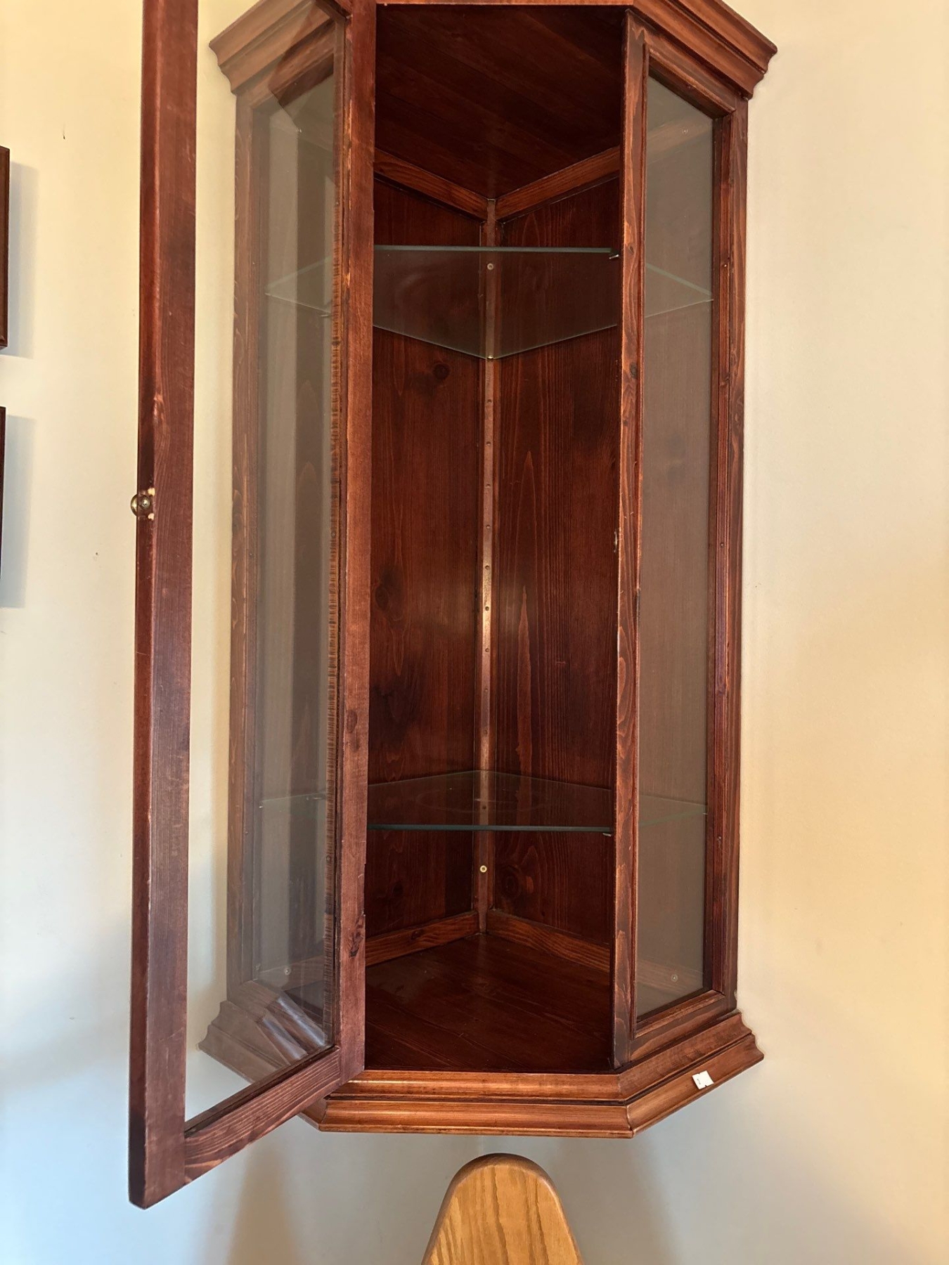 Corner Hanging Oak China Cabinet 38.5H x 21.5