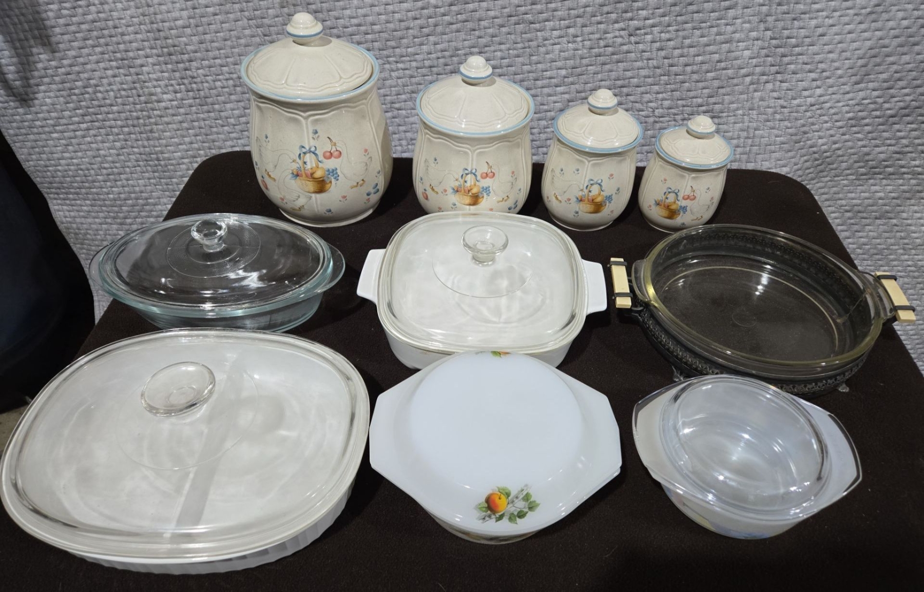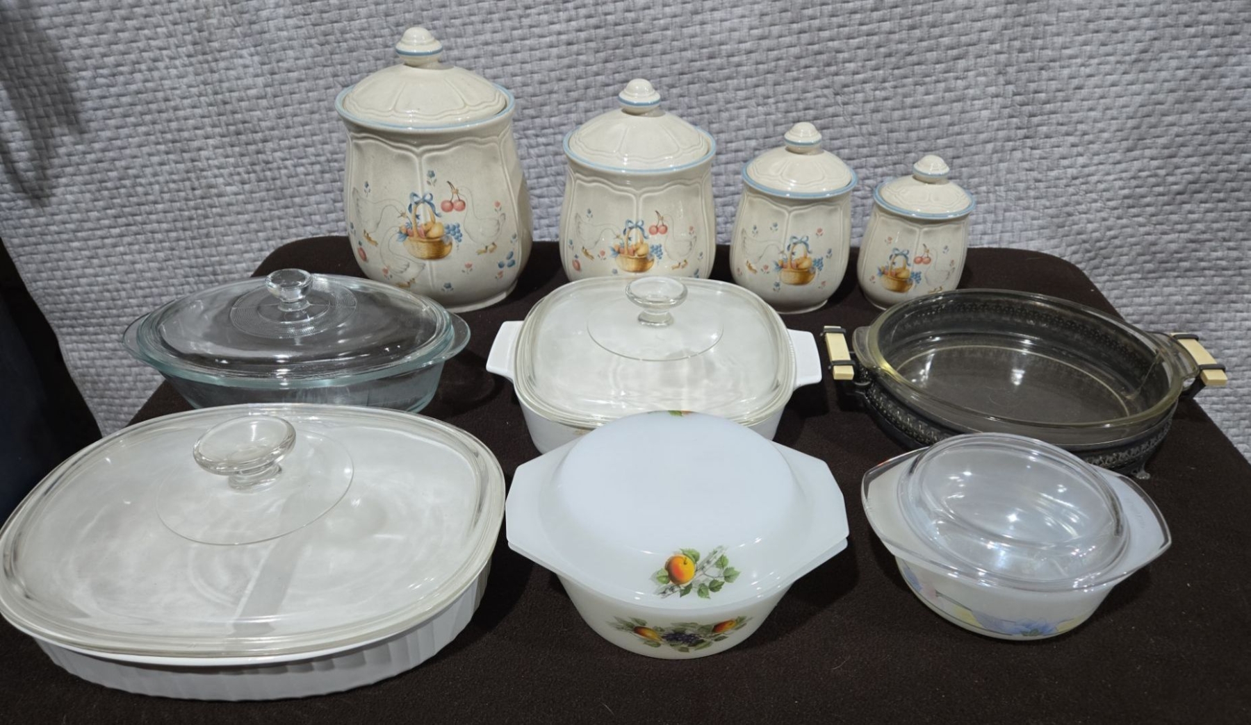 Corning Ware/Pyrex Ovenware + Made in Japan Lidded Ceramic Canisters