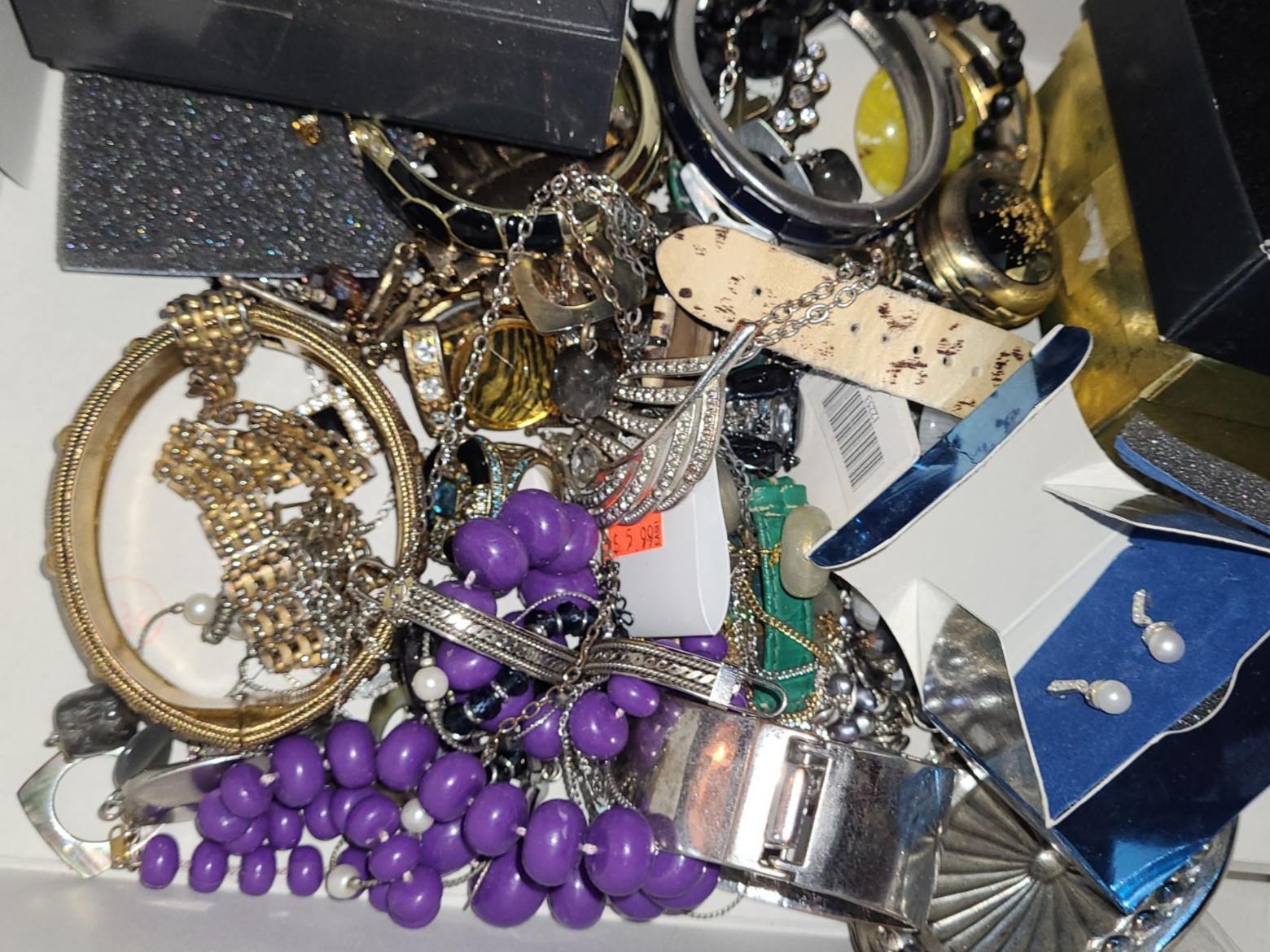 Costume Jewelry (11): Bracelets, Necklaces, Avon Earrings (New in Box), Other Pieces