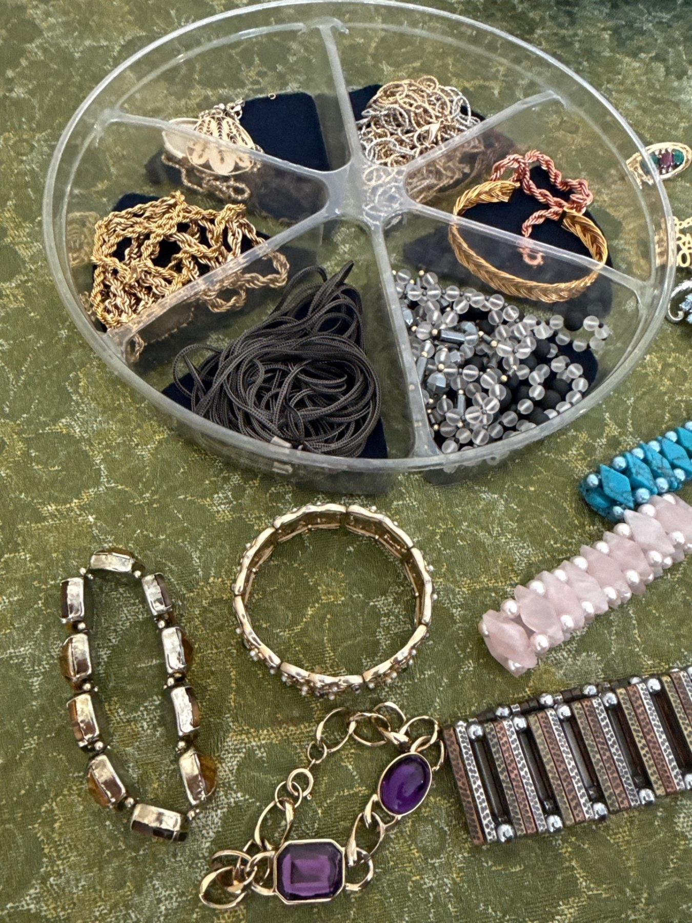 Costume Jewelry Collection #4 - Necklaces, Silver Colored Bracelets,  Broaches, Beading