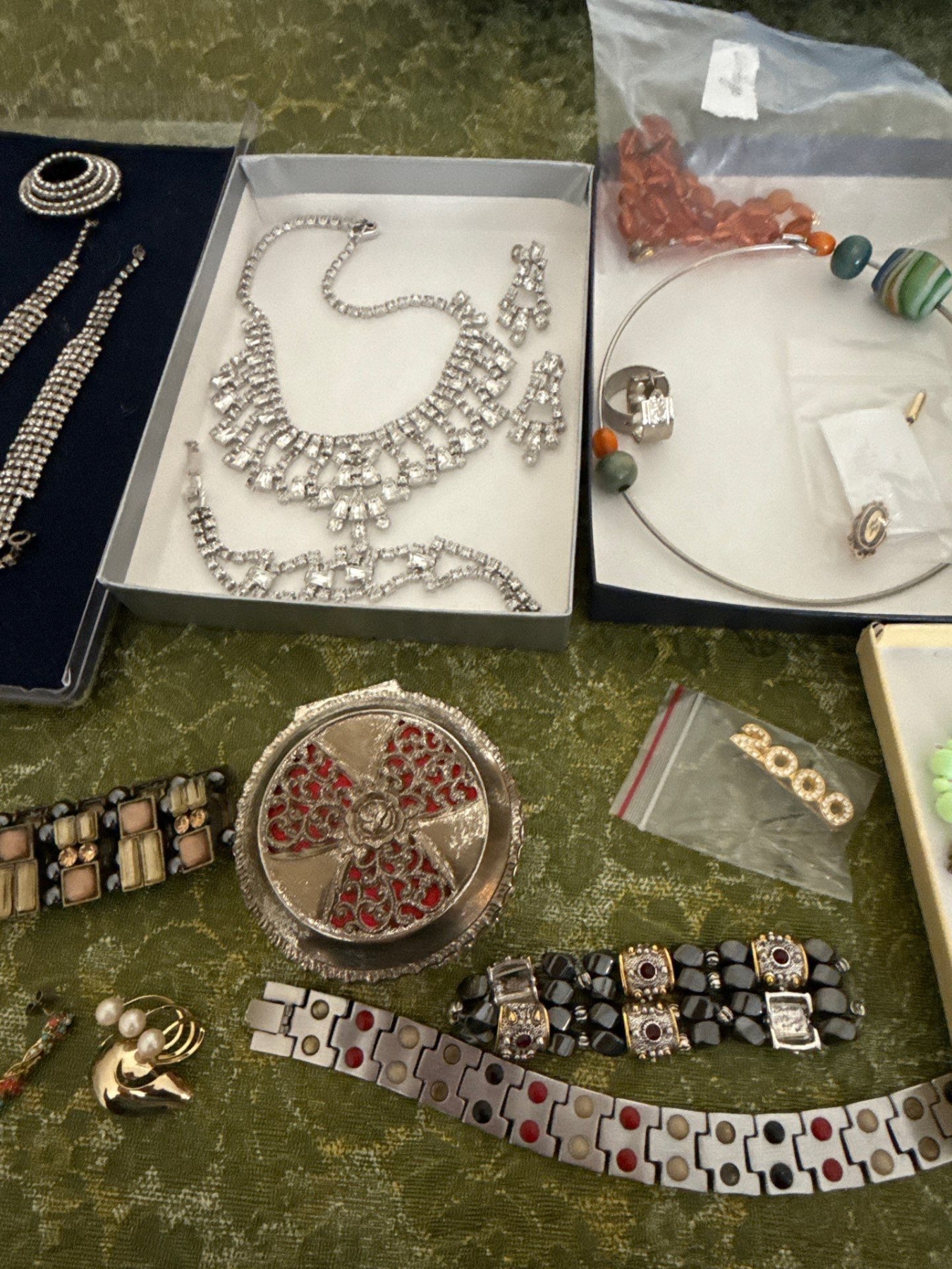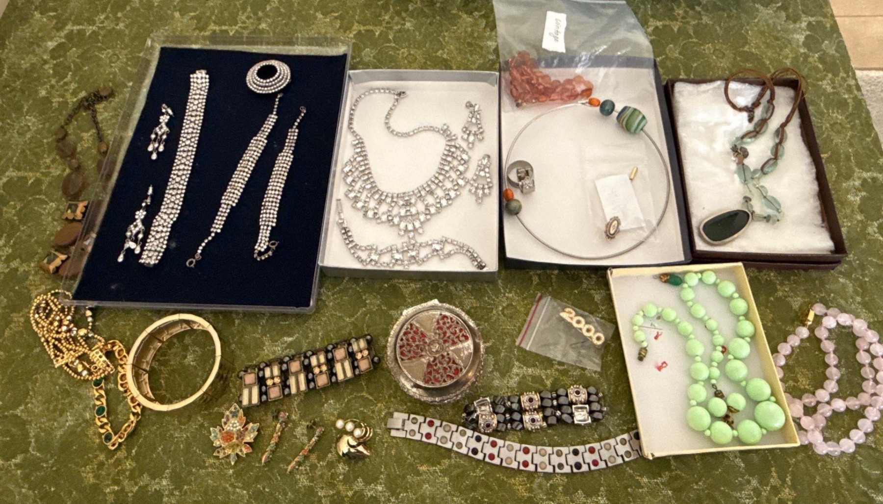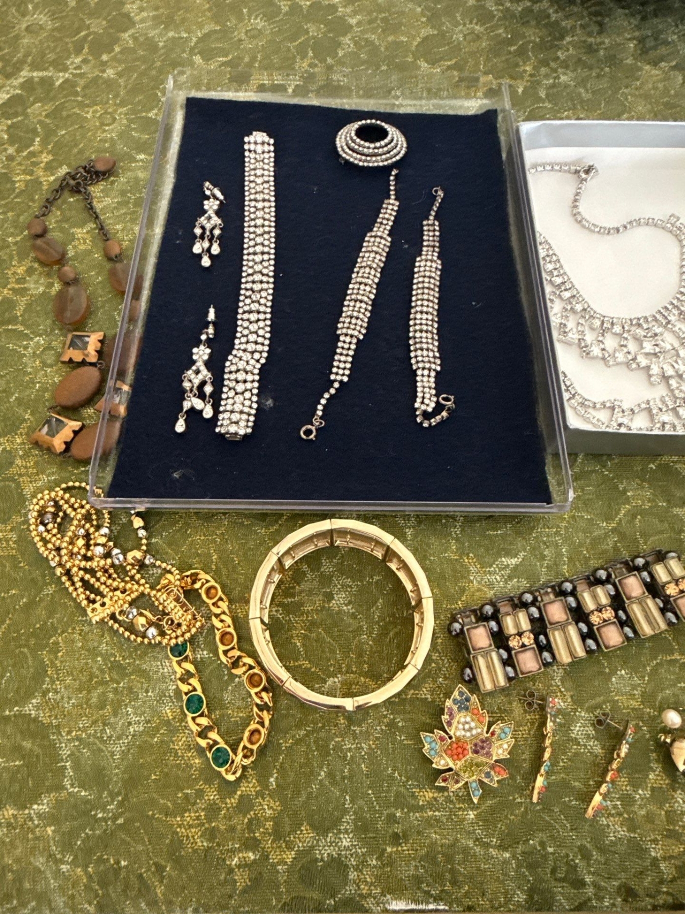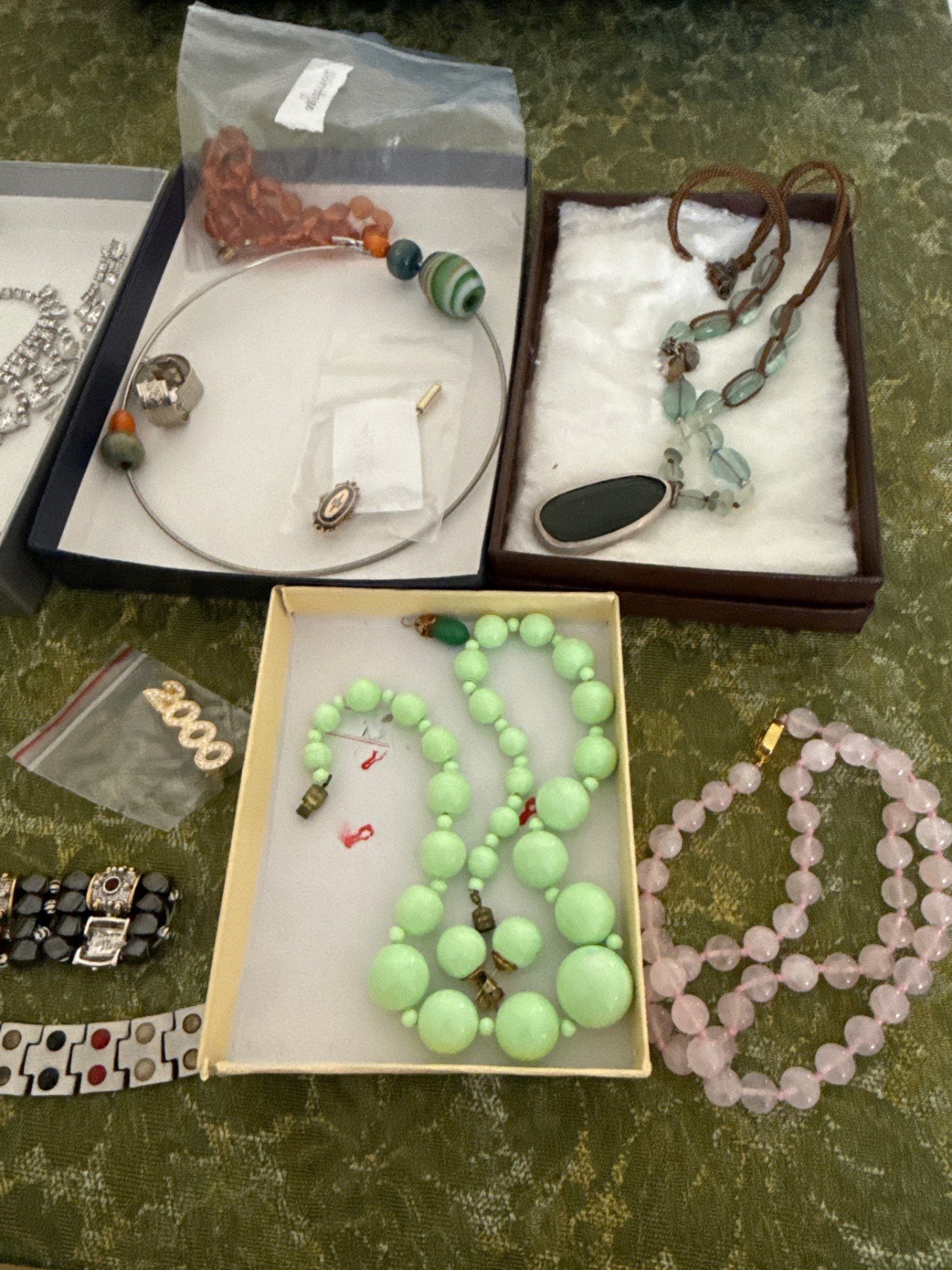Costume Jewelry Collection #6 - Blingy Necklaces/Bracelets,  Broaches, Jade Pendant & More!