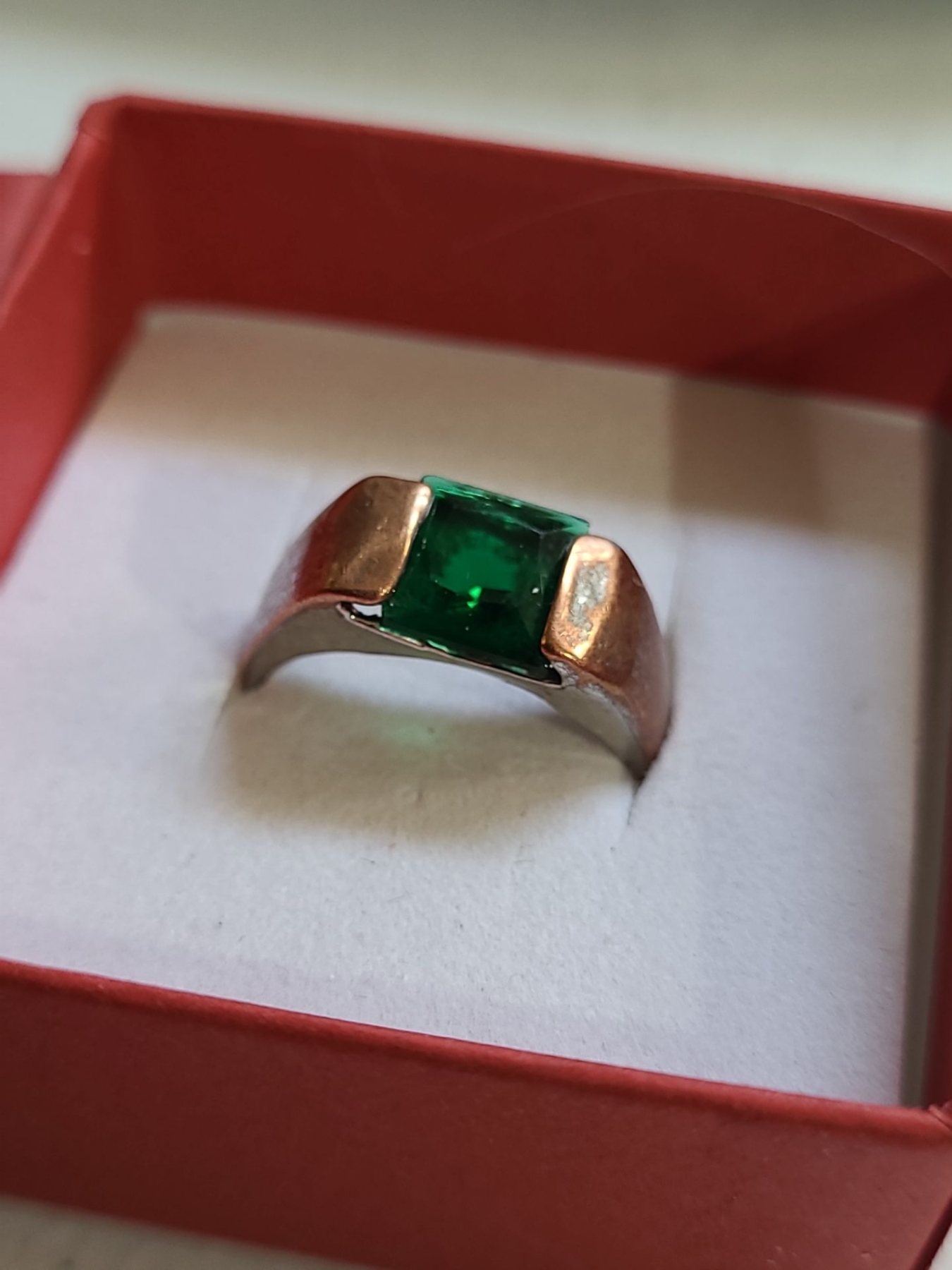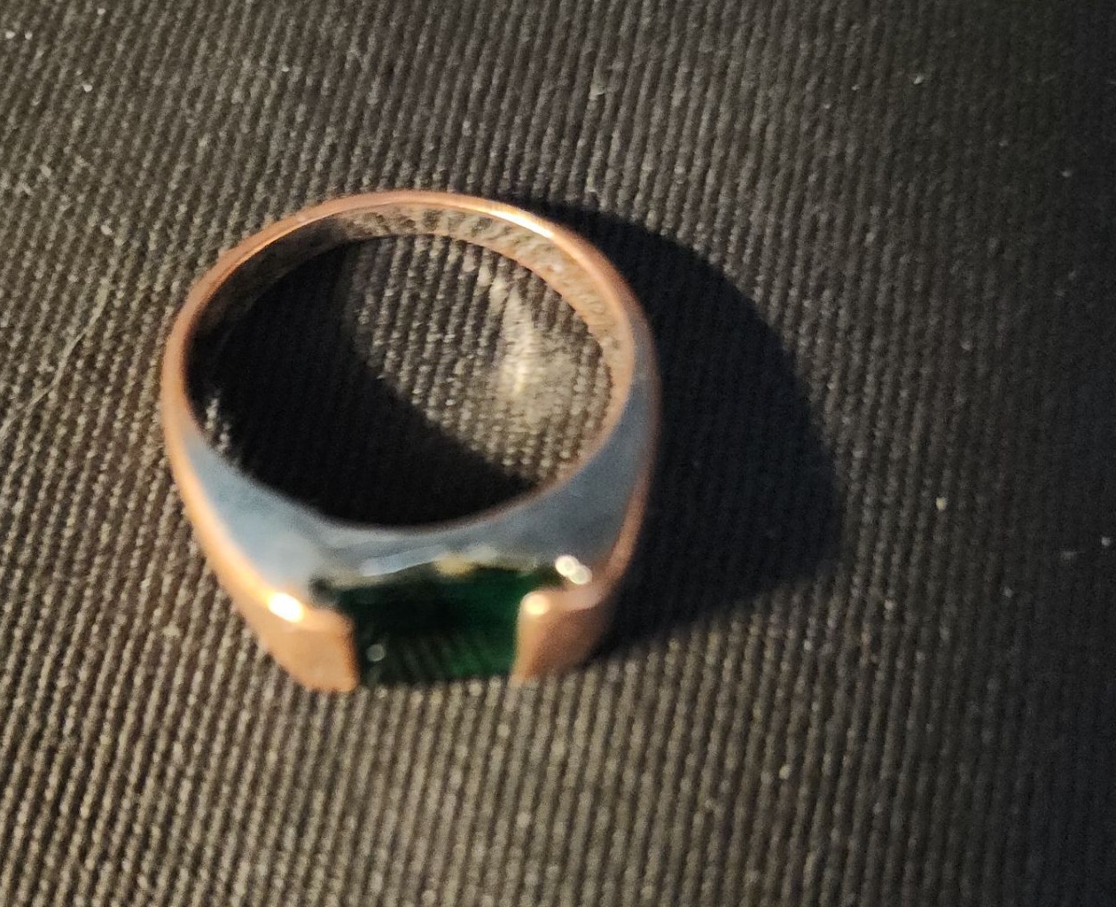 Costume Ring w/ Green Stone 2.8 gram (Total Weight) Silver Finish Worn Showing Copper (No Stamp)