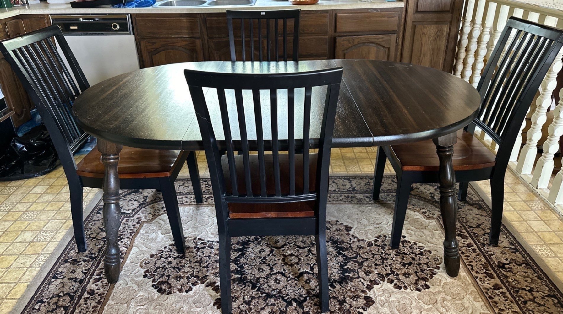Country Wood Dining Table With Leaf 65L x 43W x 28T & 4 Chairs