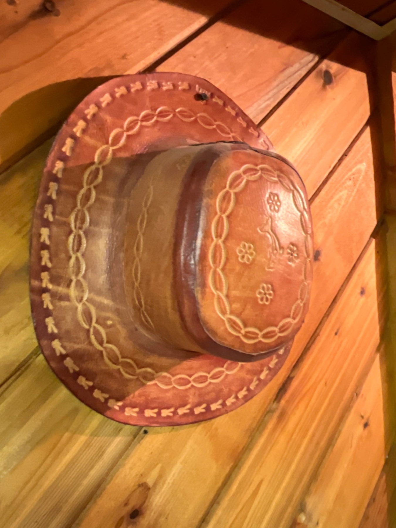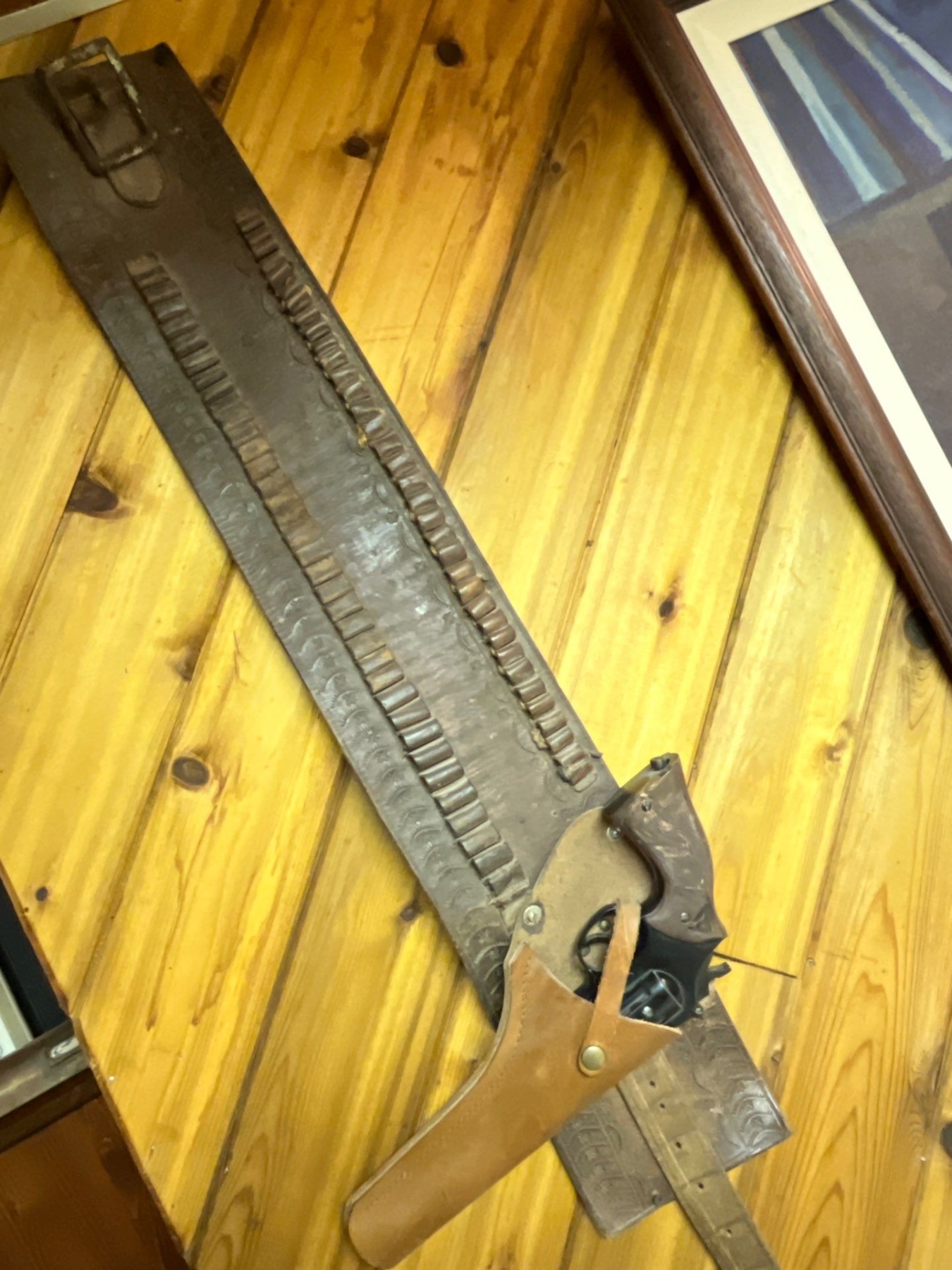 Cowboy Leather hat With Leather Holster Ammo Belt With Replica Cowboy Gun