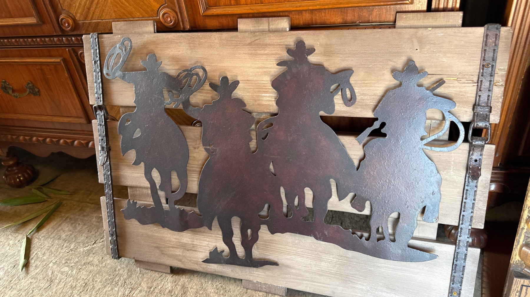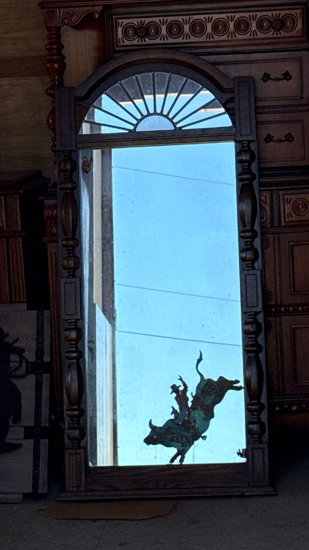 Cowboy Riding Bull Wall Mirror with Wood Cowboy Decor
