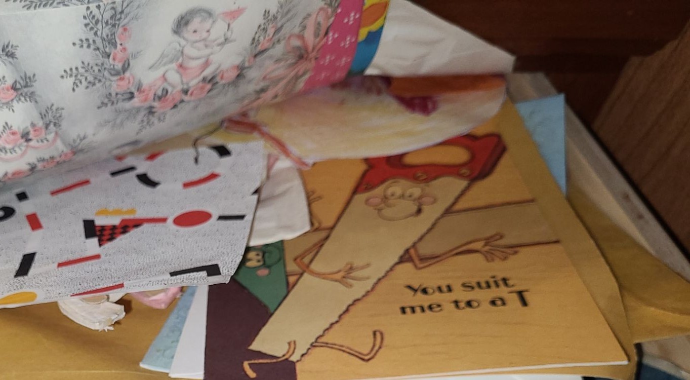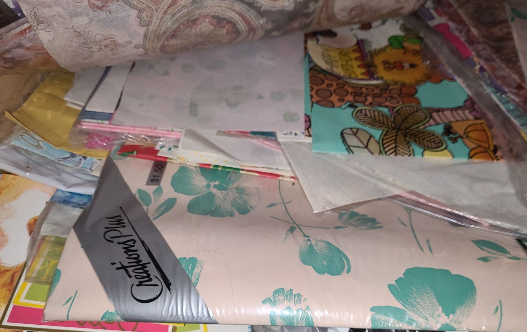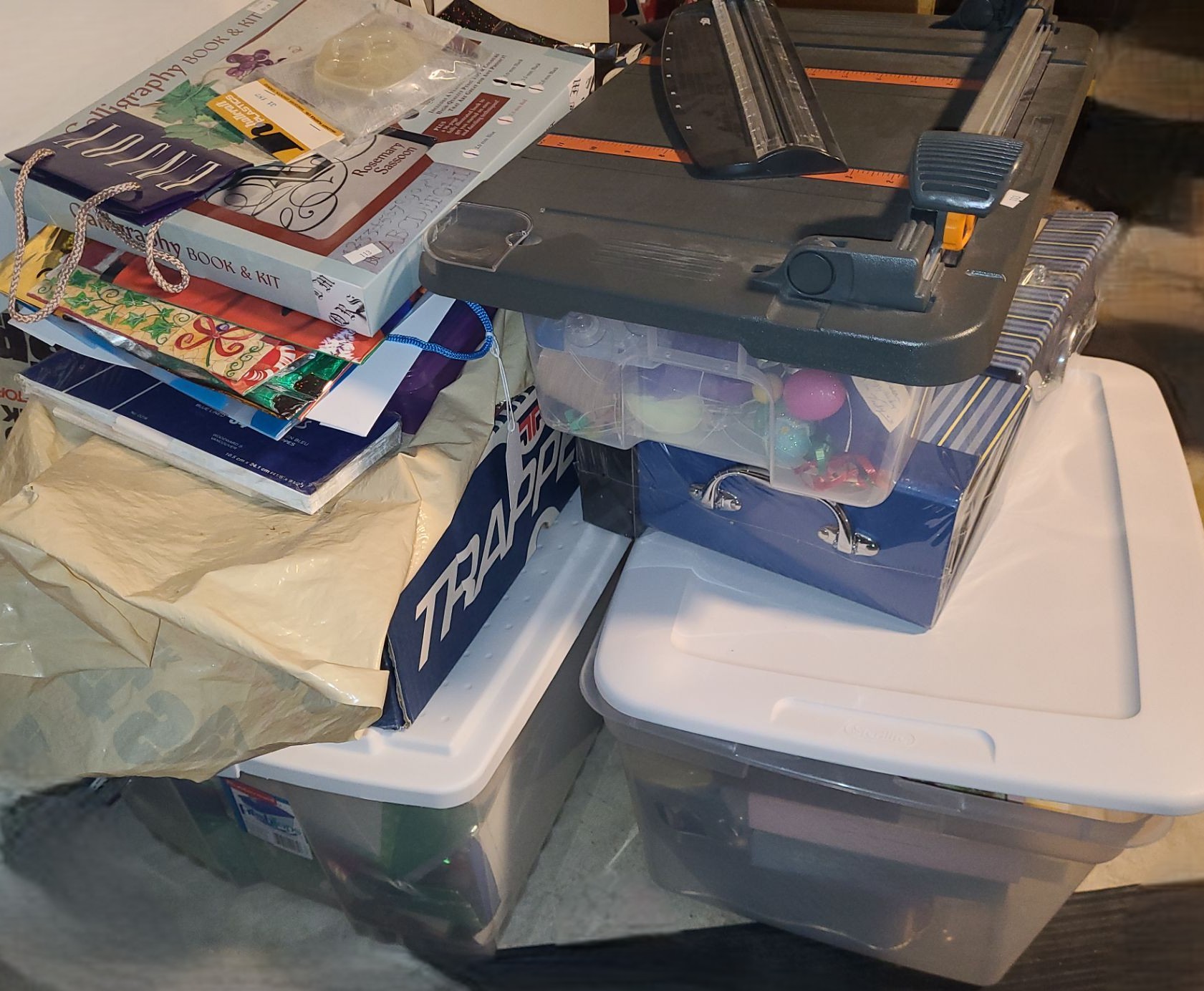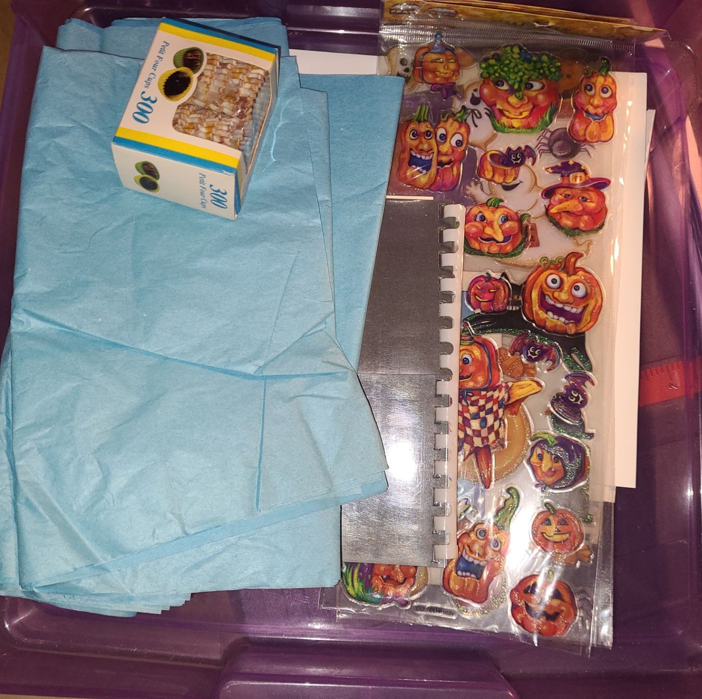 Craft Cutting Board and Bins Including: Gift Wrap, Vintage Cards, Ribbons and More!
