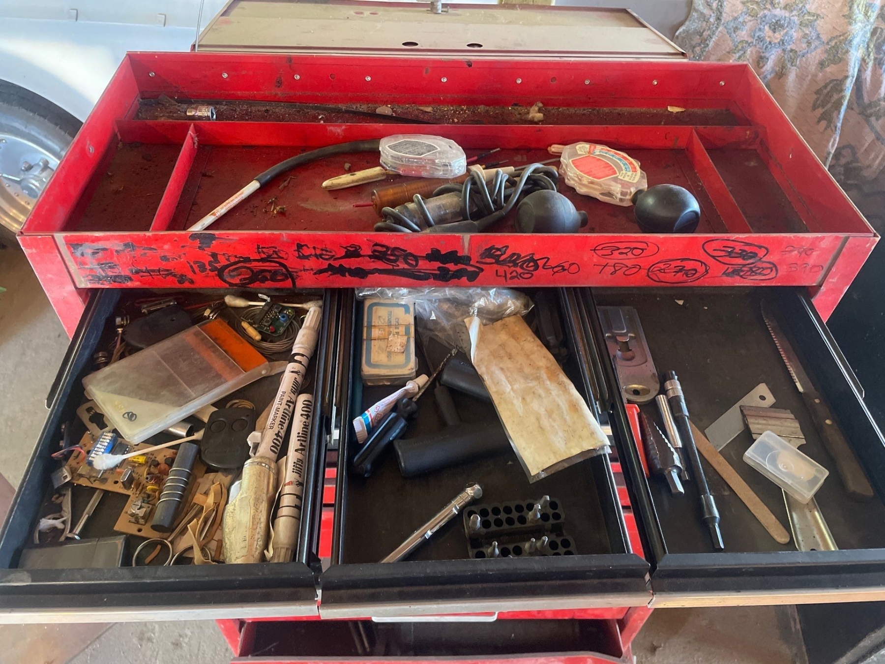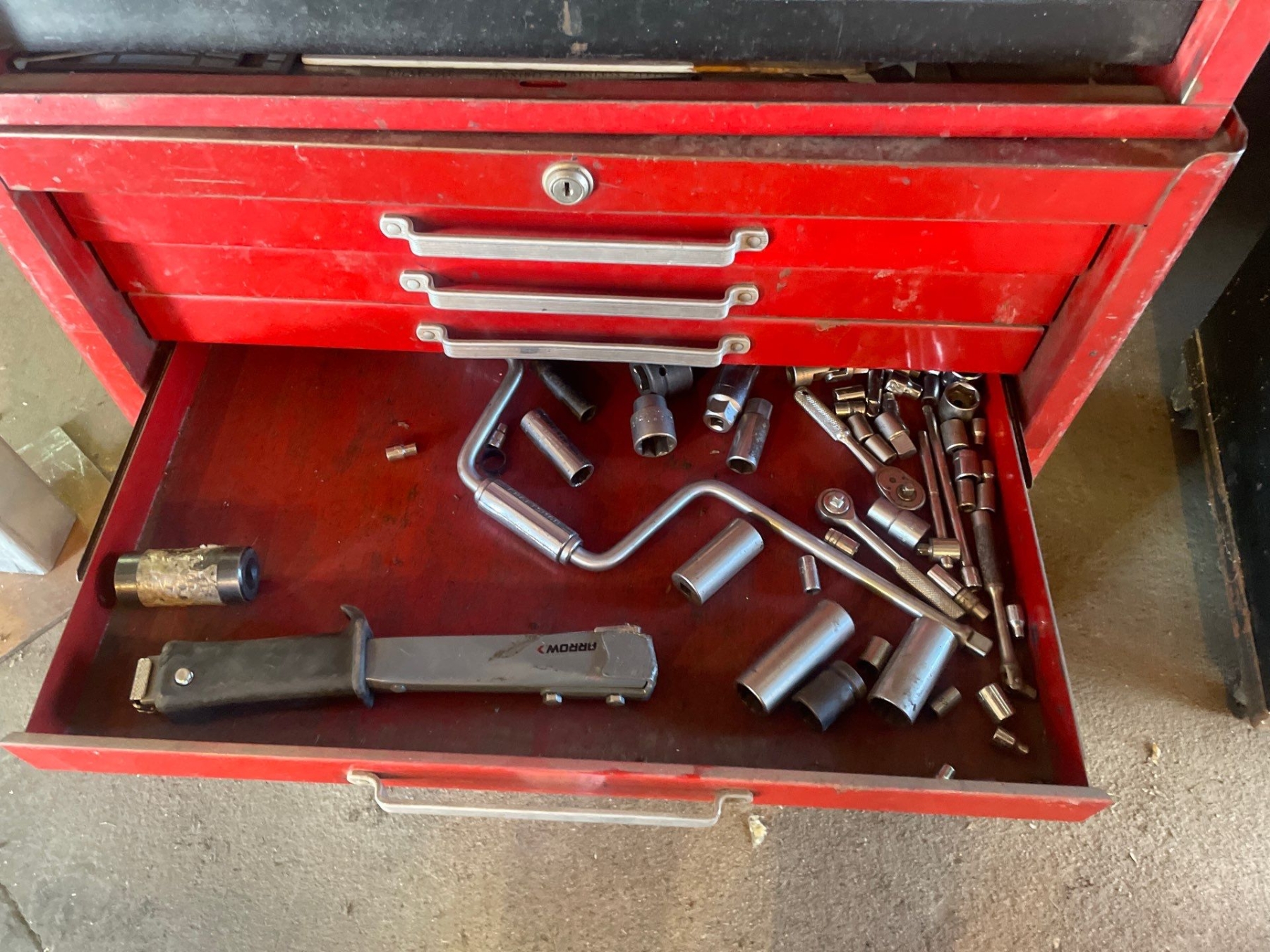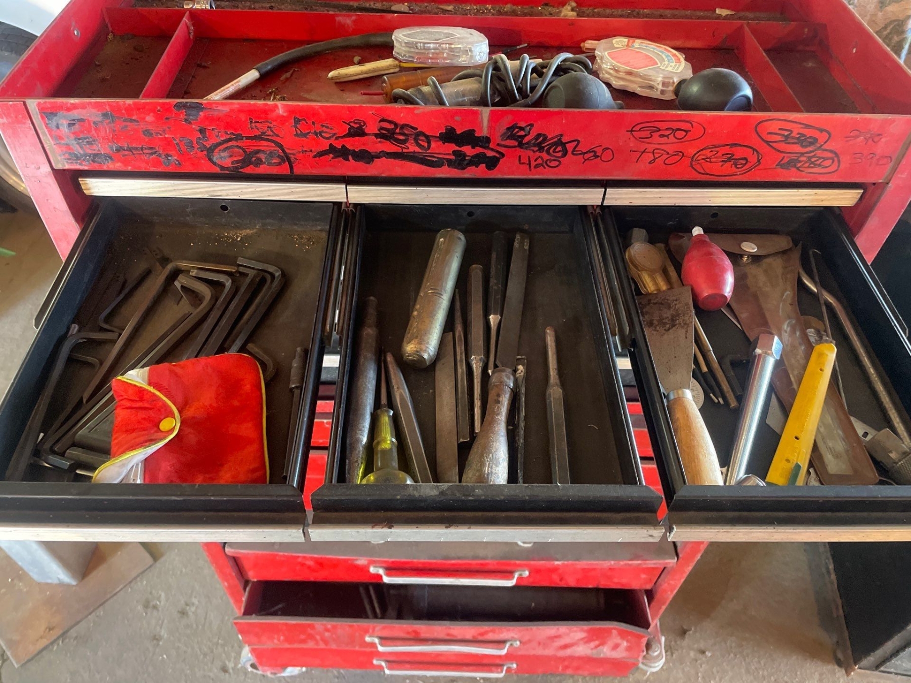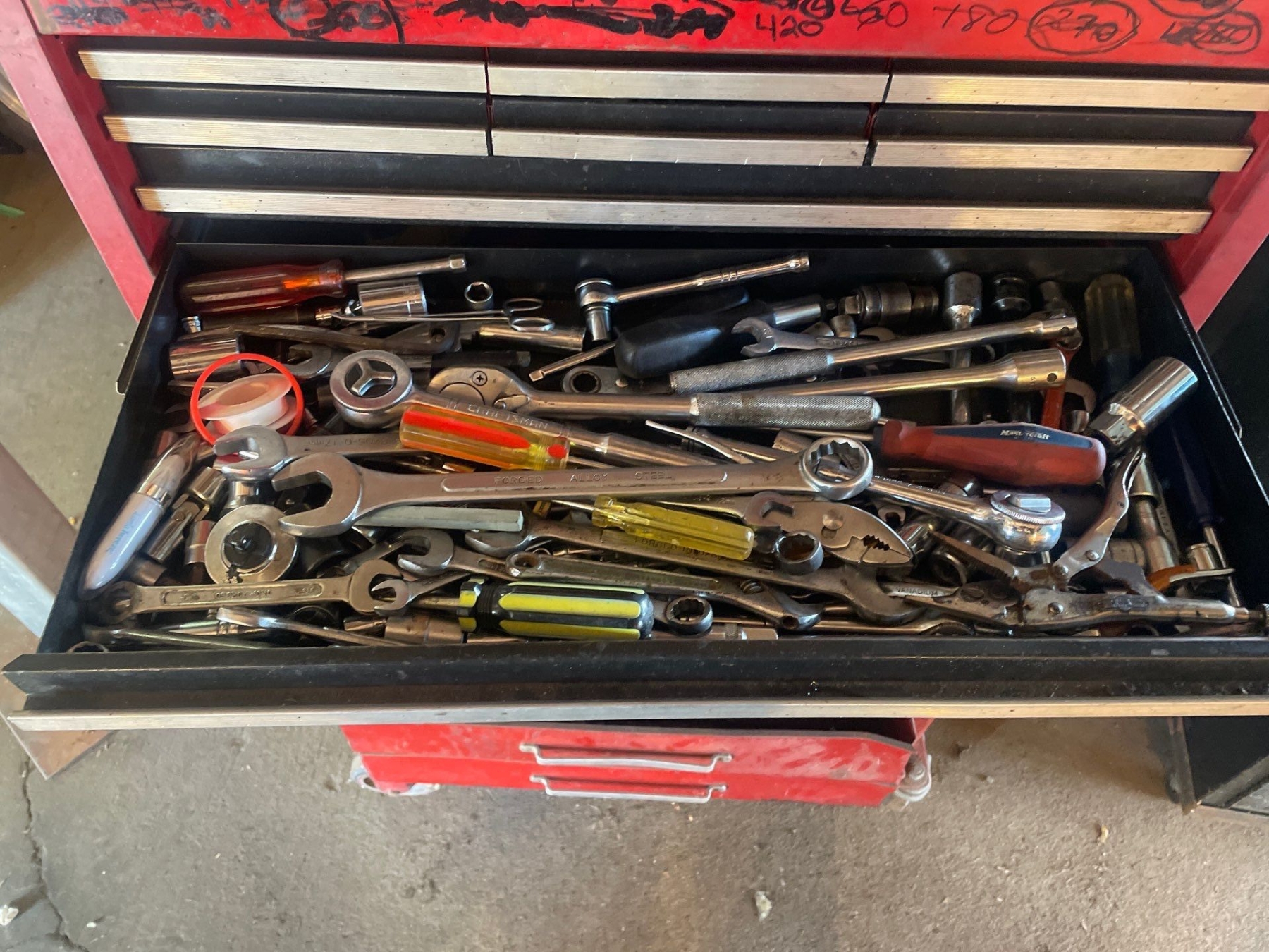 Craftsman Multi Drawer Toolbox With Tools Included 50" High x 27" Wide x 18" Depth. Bottom 2 drawers sticky.