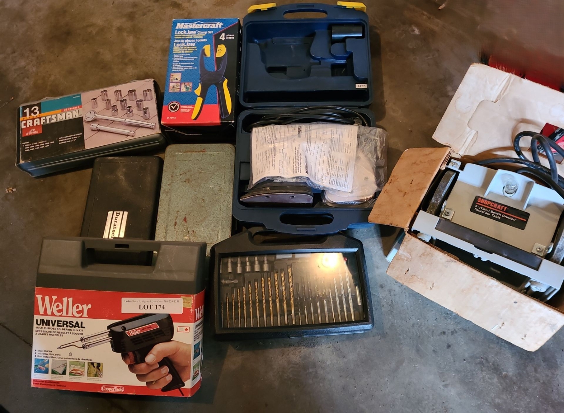 Craftsman Socket Set, MasterCraft Sander, Drill Bits, Shopcraft Bench Grinder & more