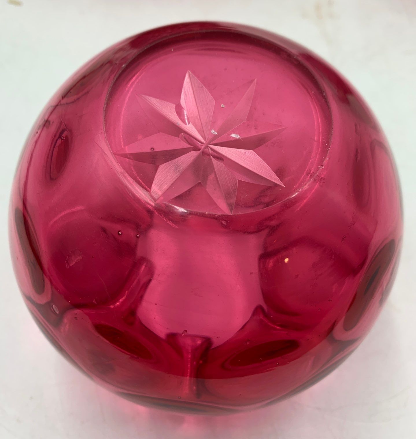 Cranberry Hobnail Small Pitcher Fenton, Cranberry Fenton Basket, and Stunning Hand Blown Rose Vase