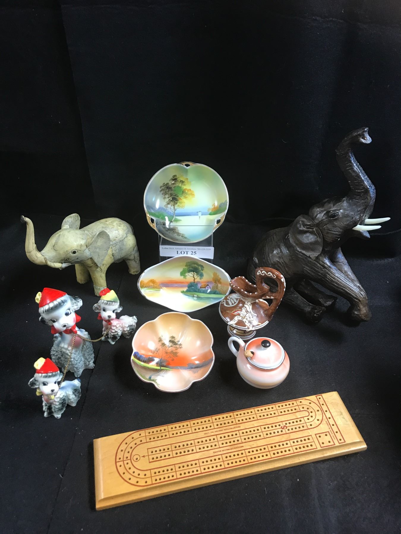 Cribbage Game, Noritake Hand Painted Bowls from Japan, Greek Jug, Wood & Paper Elephants, Vintage Poodle Figurines