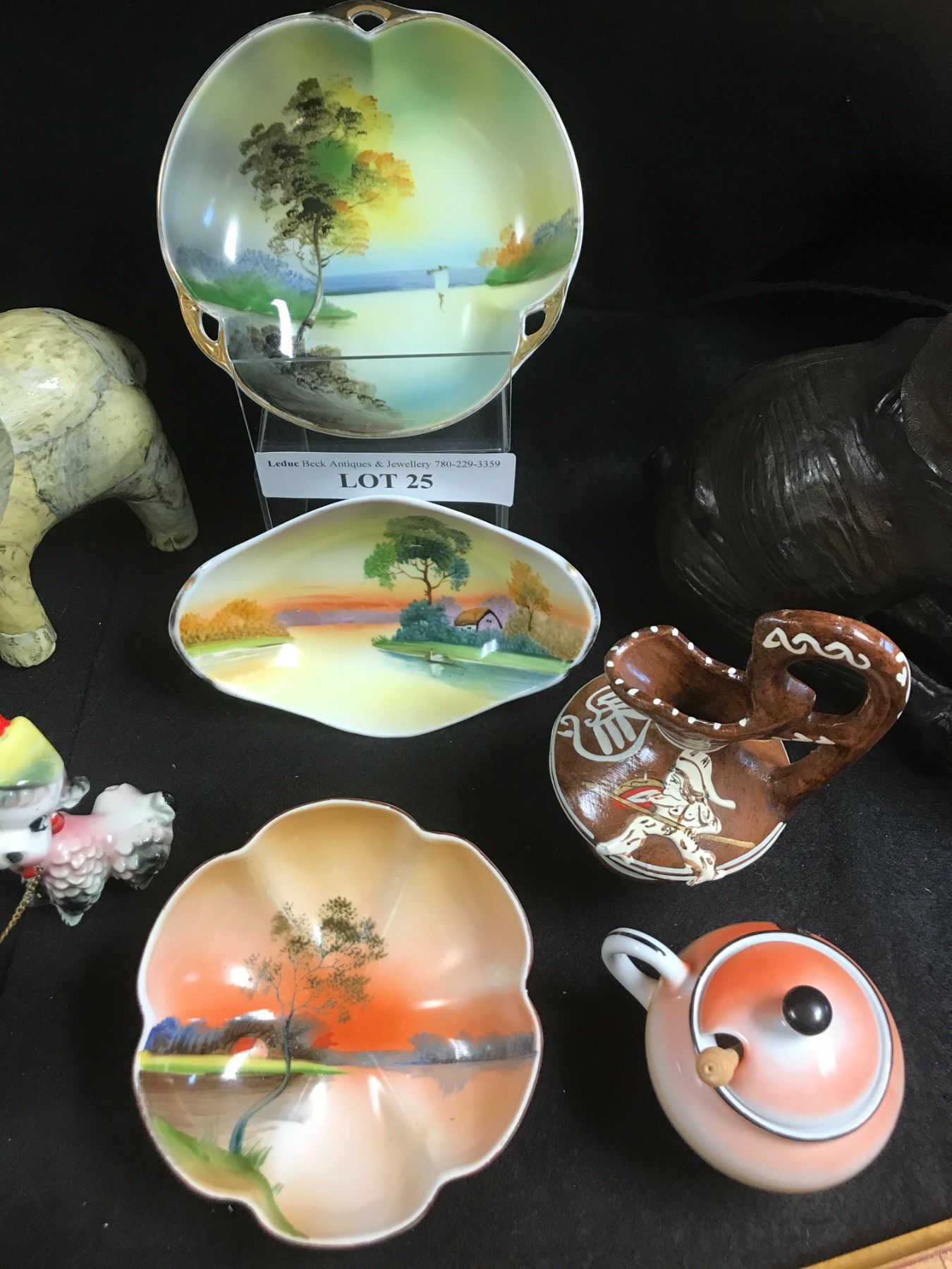 Cribbage Game, Noritake Hand Painted Bowls from Japan, Greek Jug, Wood & Paper Elephants, Vintage Po
