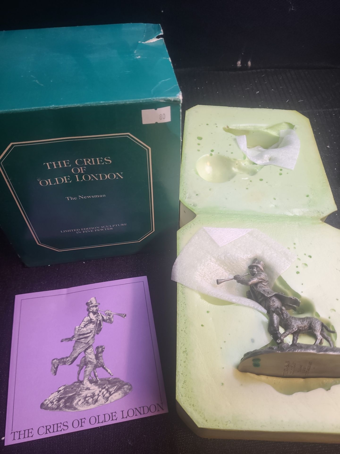 Cries of Olde London Pewter Figurine, Franklin Mint: The Newsman