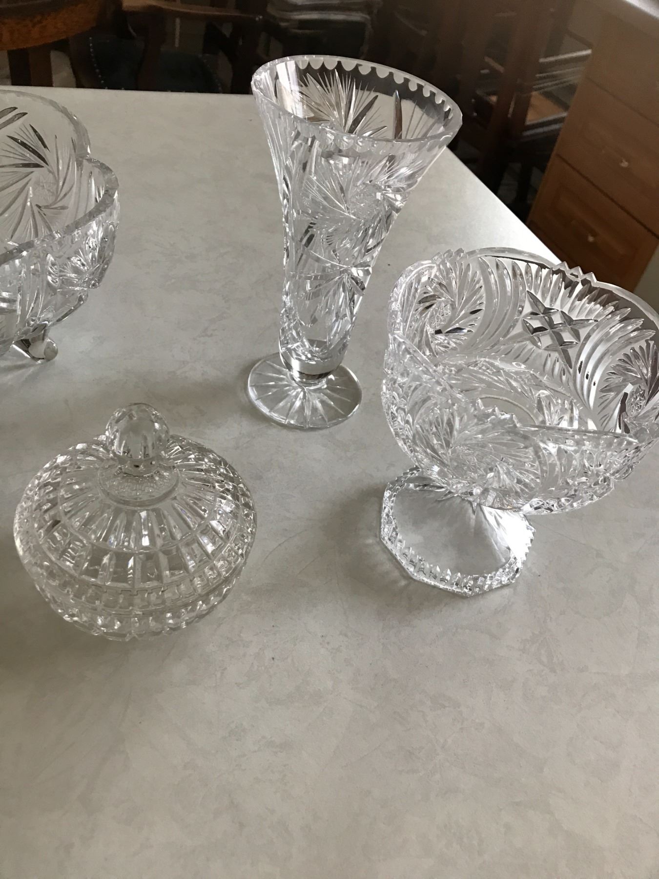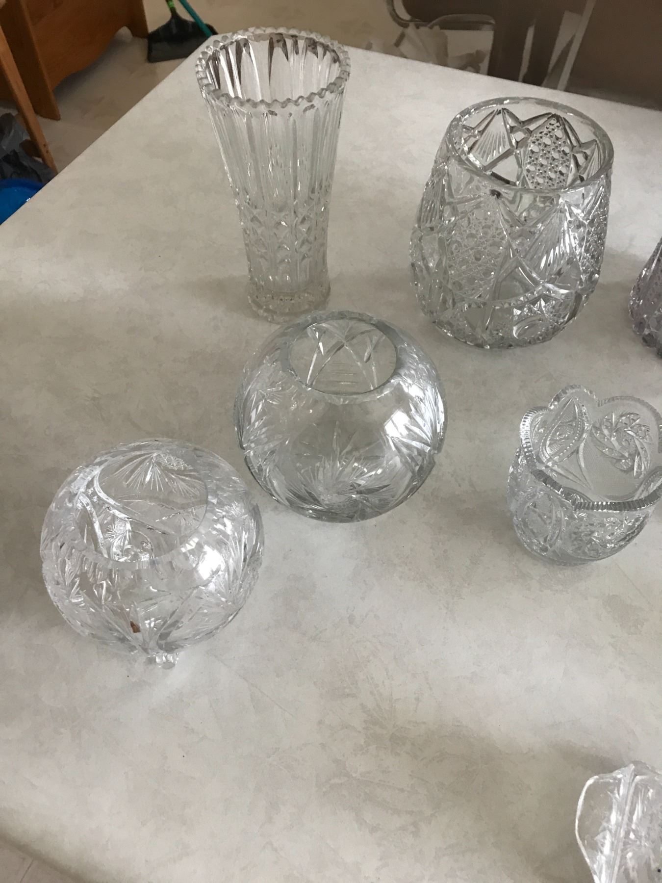 Crystal Bowls, Water Pitcher, Butter Dish, Candy Dishes, Vases, Sugar & Creamer