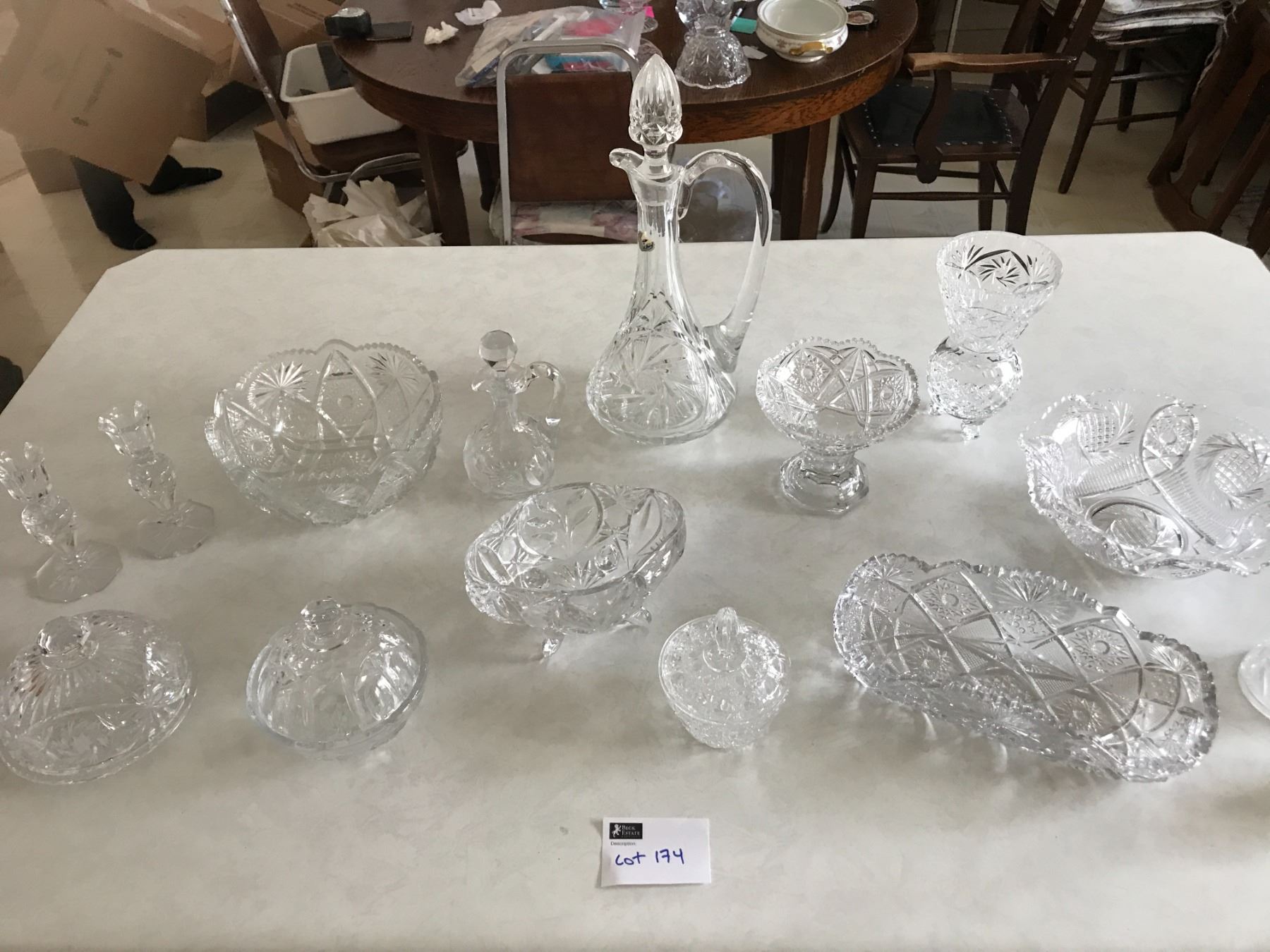 Crystal Decanter, Bowls, Candy Dish, Vase, Butter Dish, Candle Holders & Bells etc