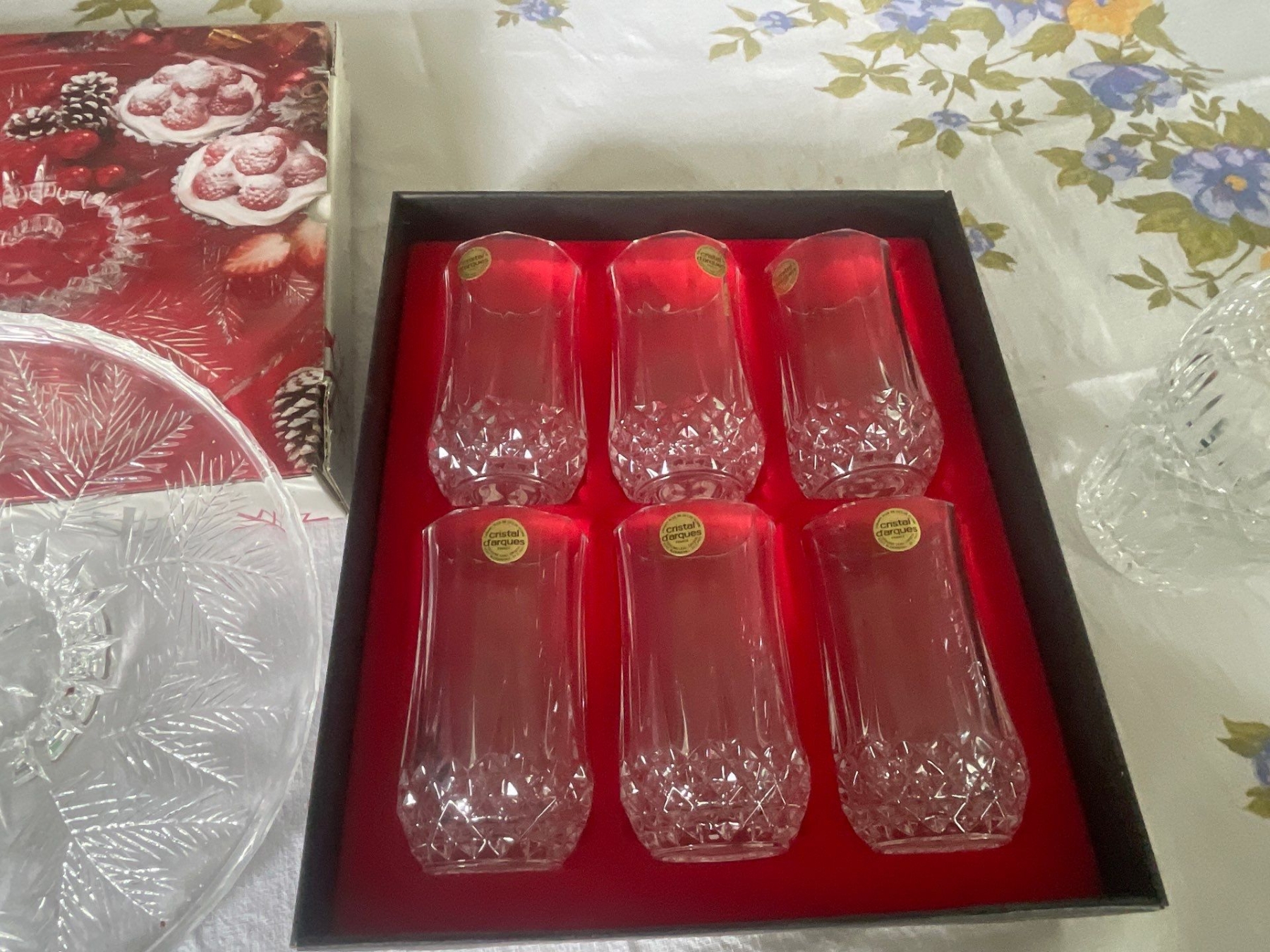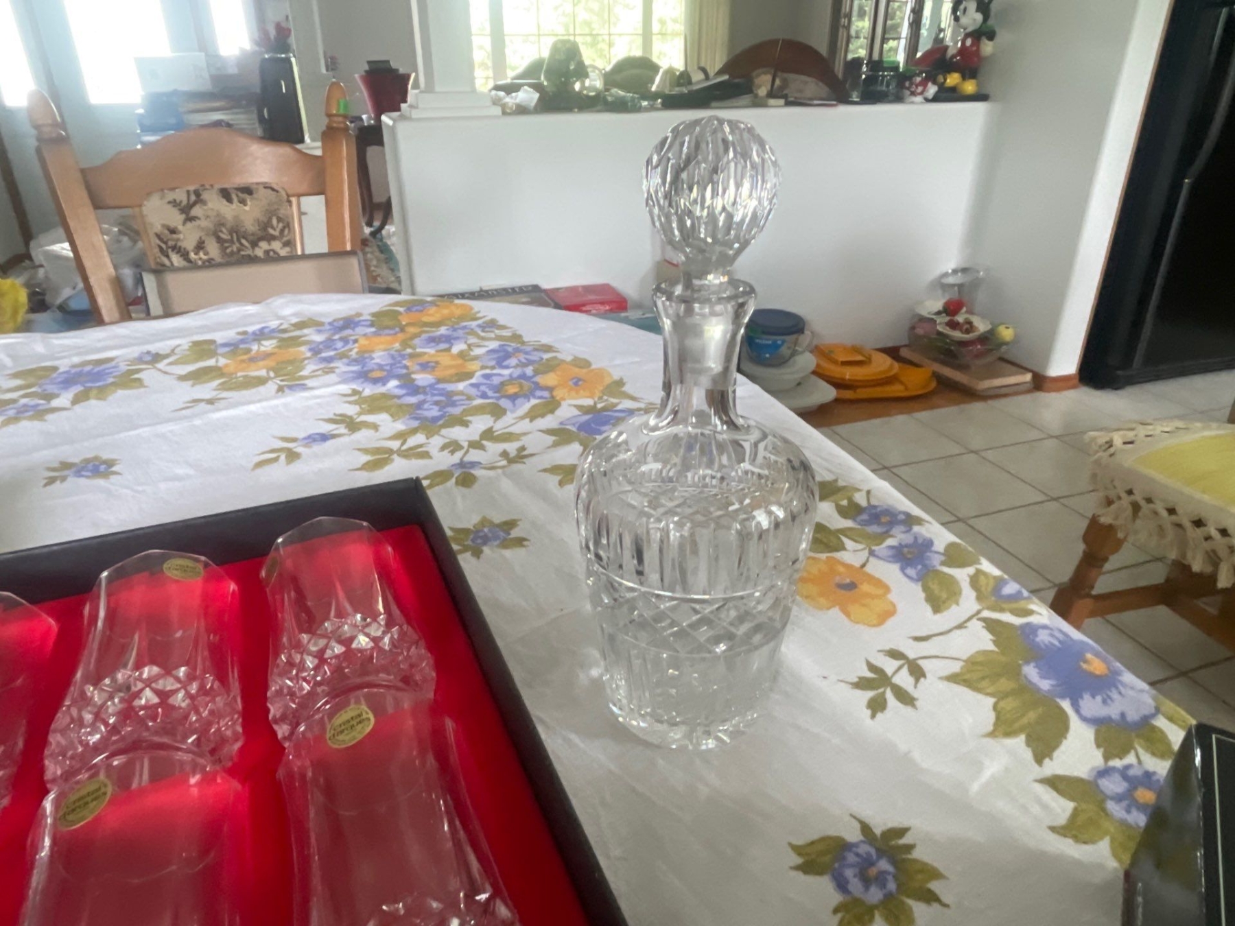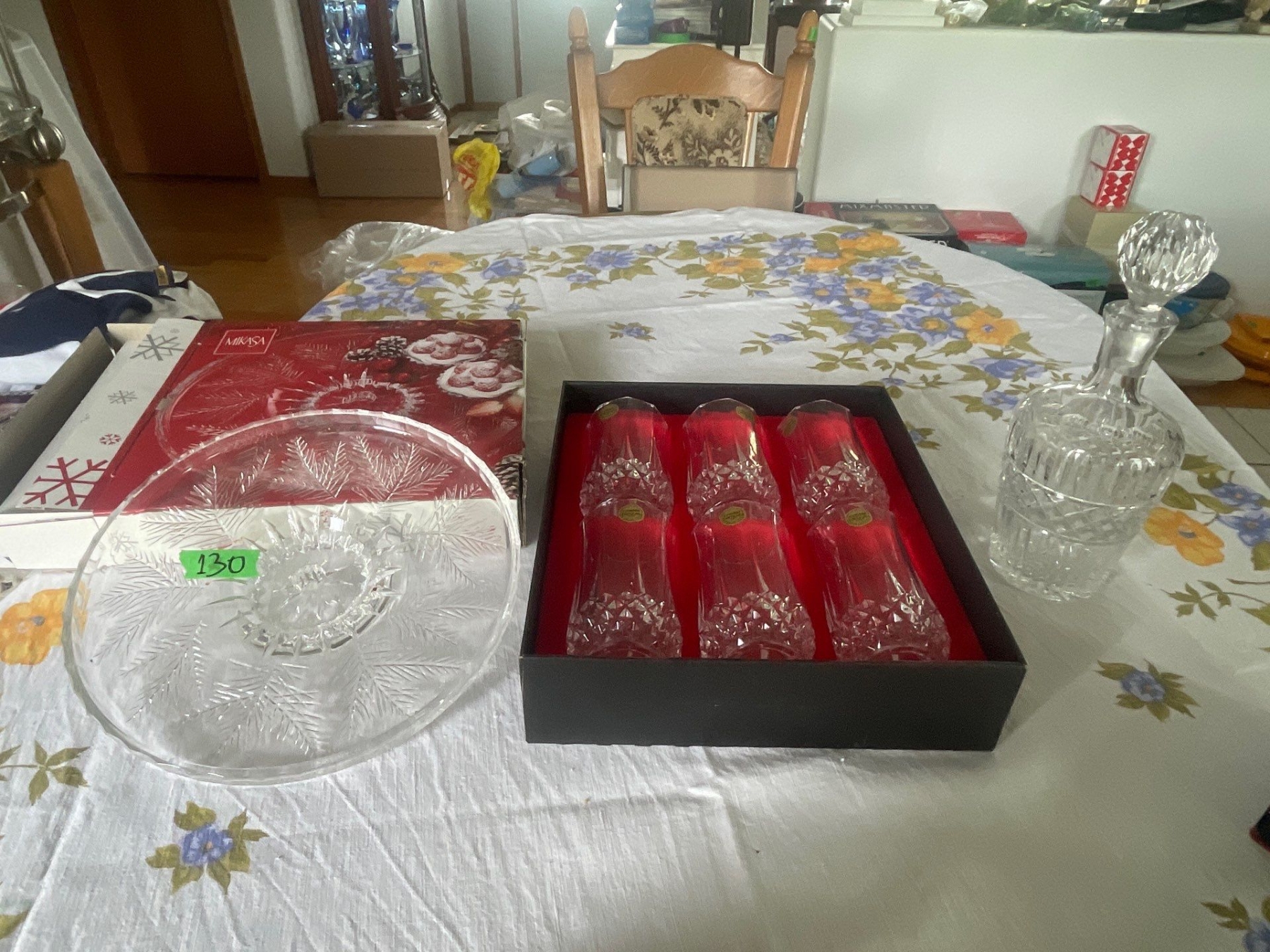 Crystal Glasses (New in Box) , Cake Tray, Decanter