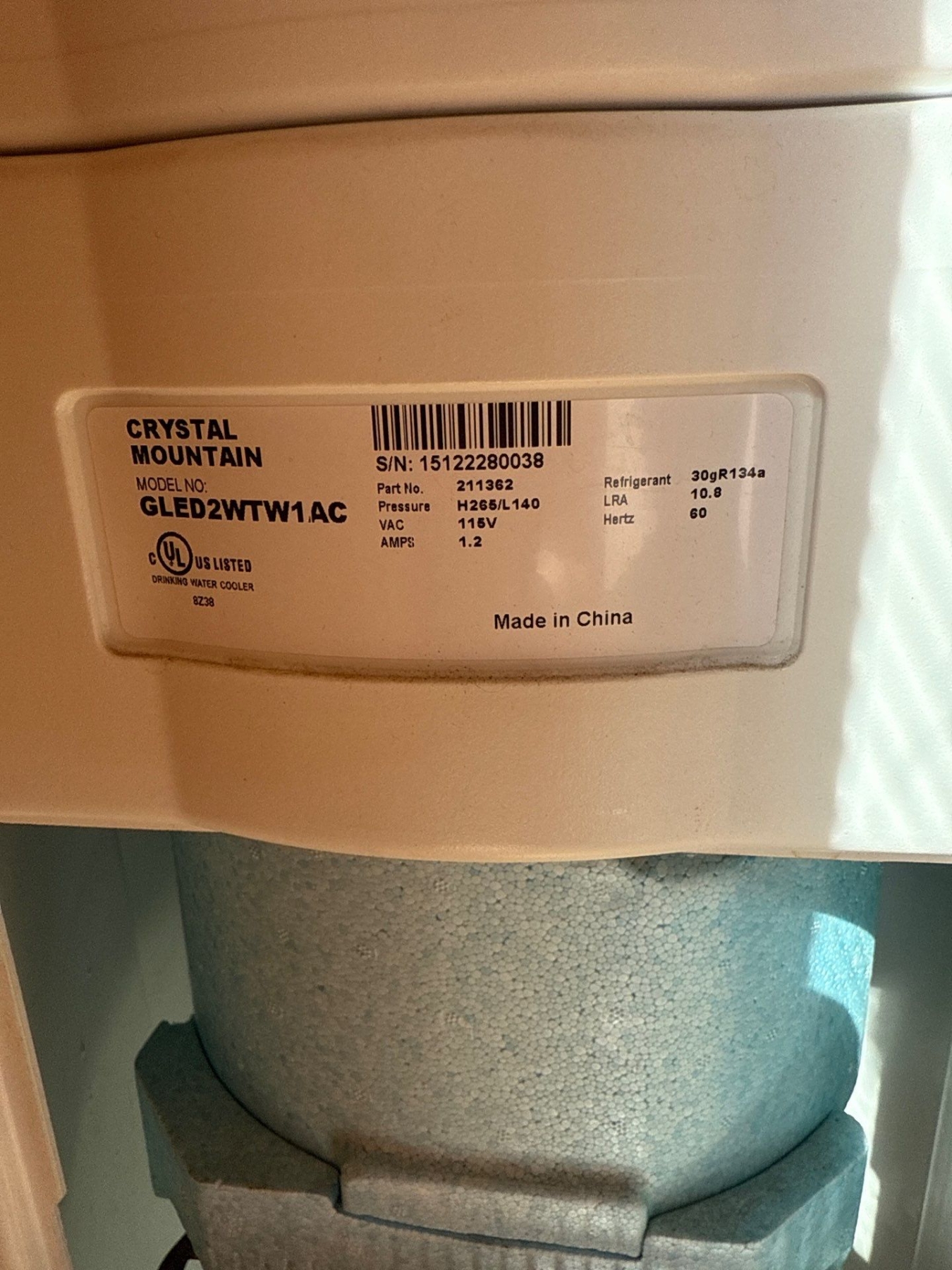Crystal Mountain Water Coller Model No. GLED2WTW1AC