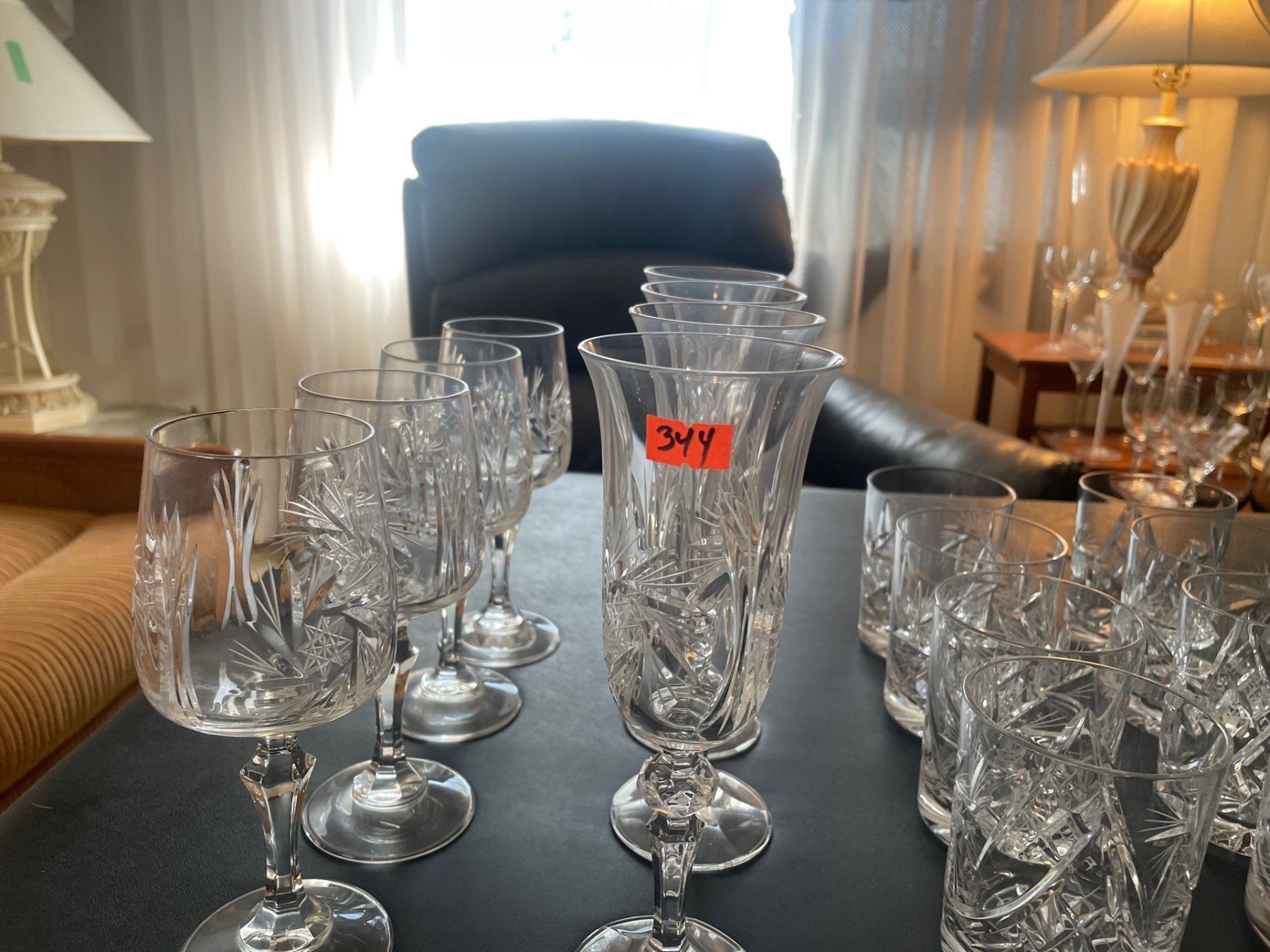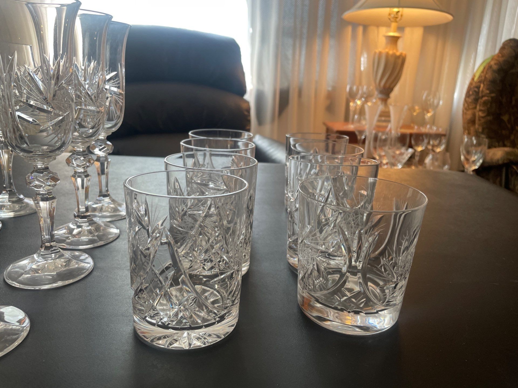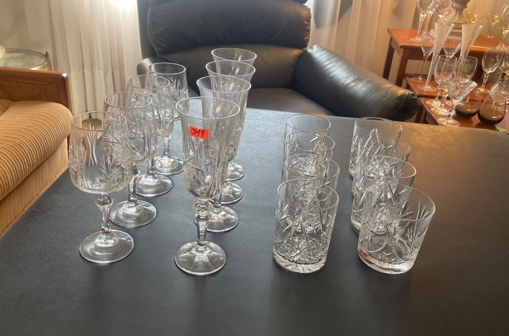 Crystal Tumblers (8), Crystal Wine Goblets (8),