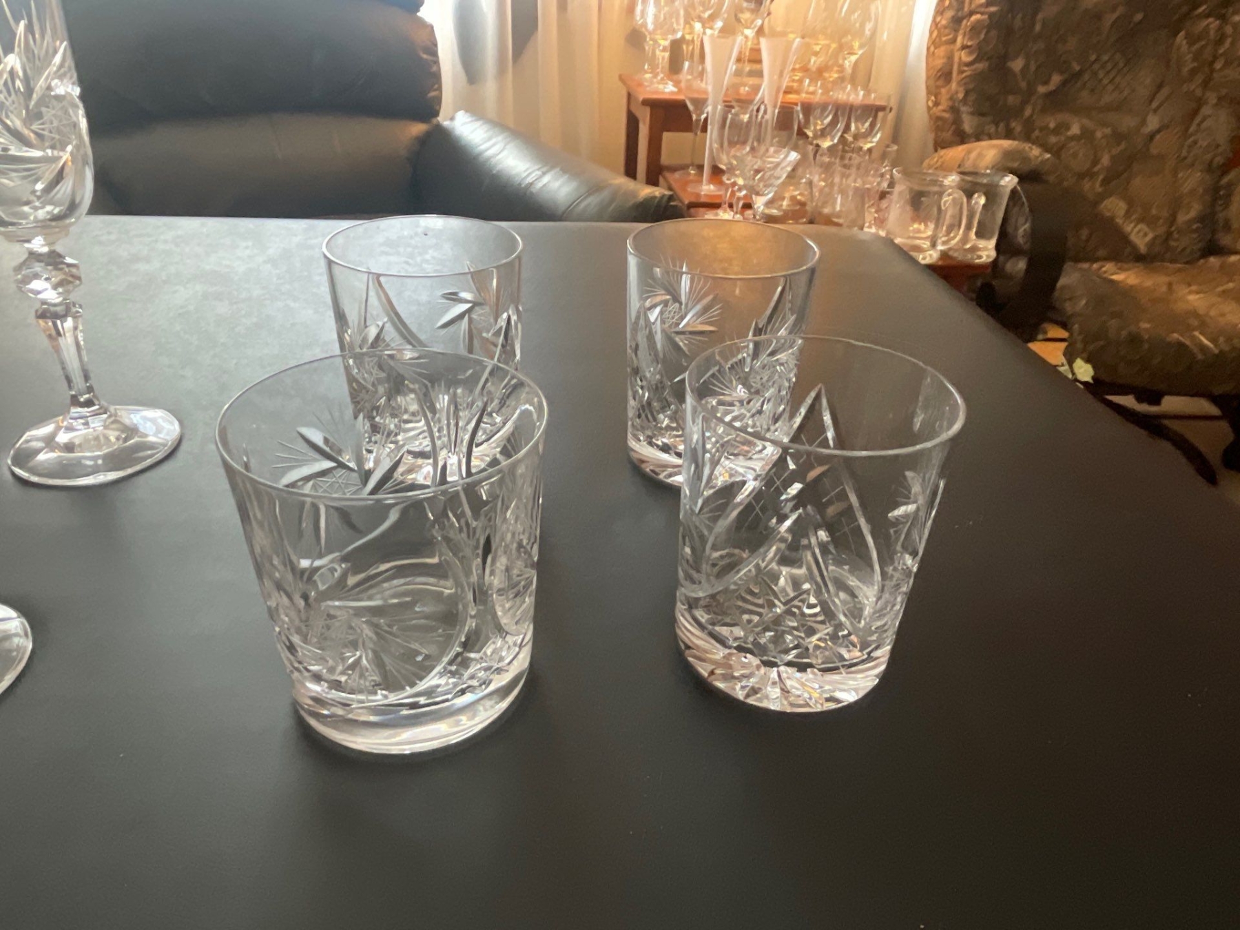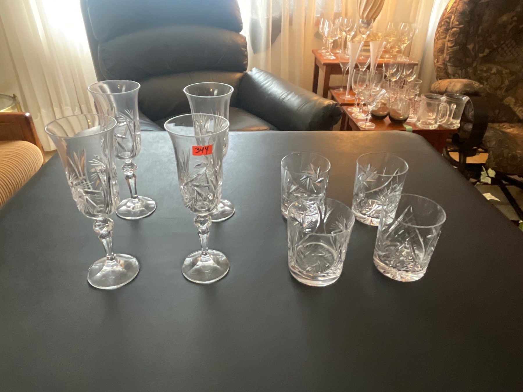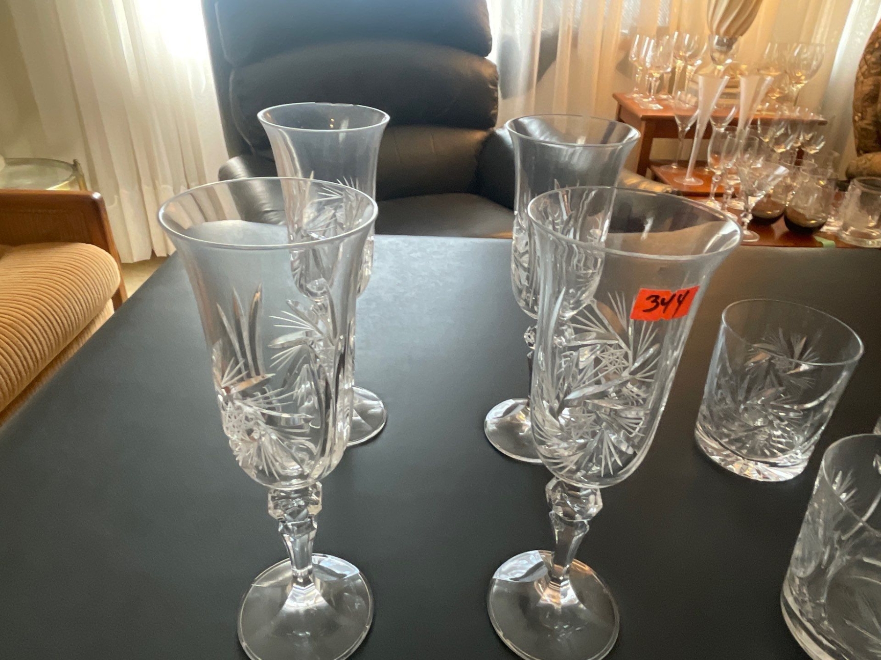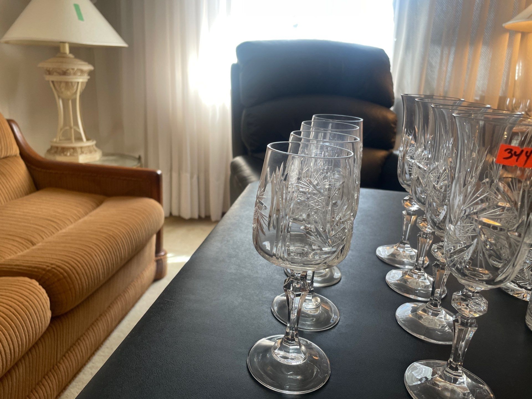 Crystal Tumblers (8), Crystal Wine Goblets (8),
