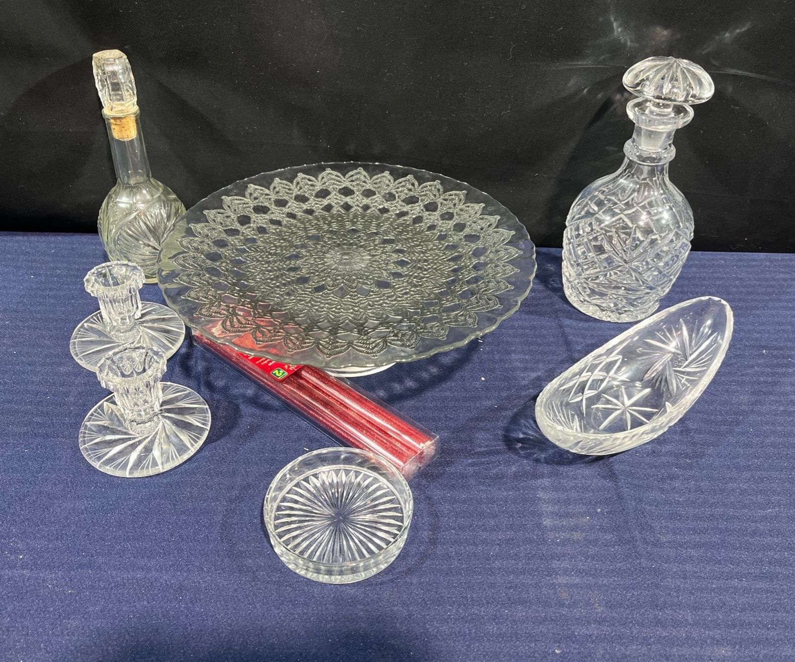 Crystal and Glassware - Decanter, Tray, Candlestick Holder, and more