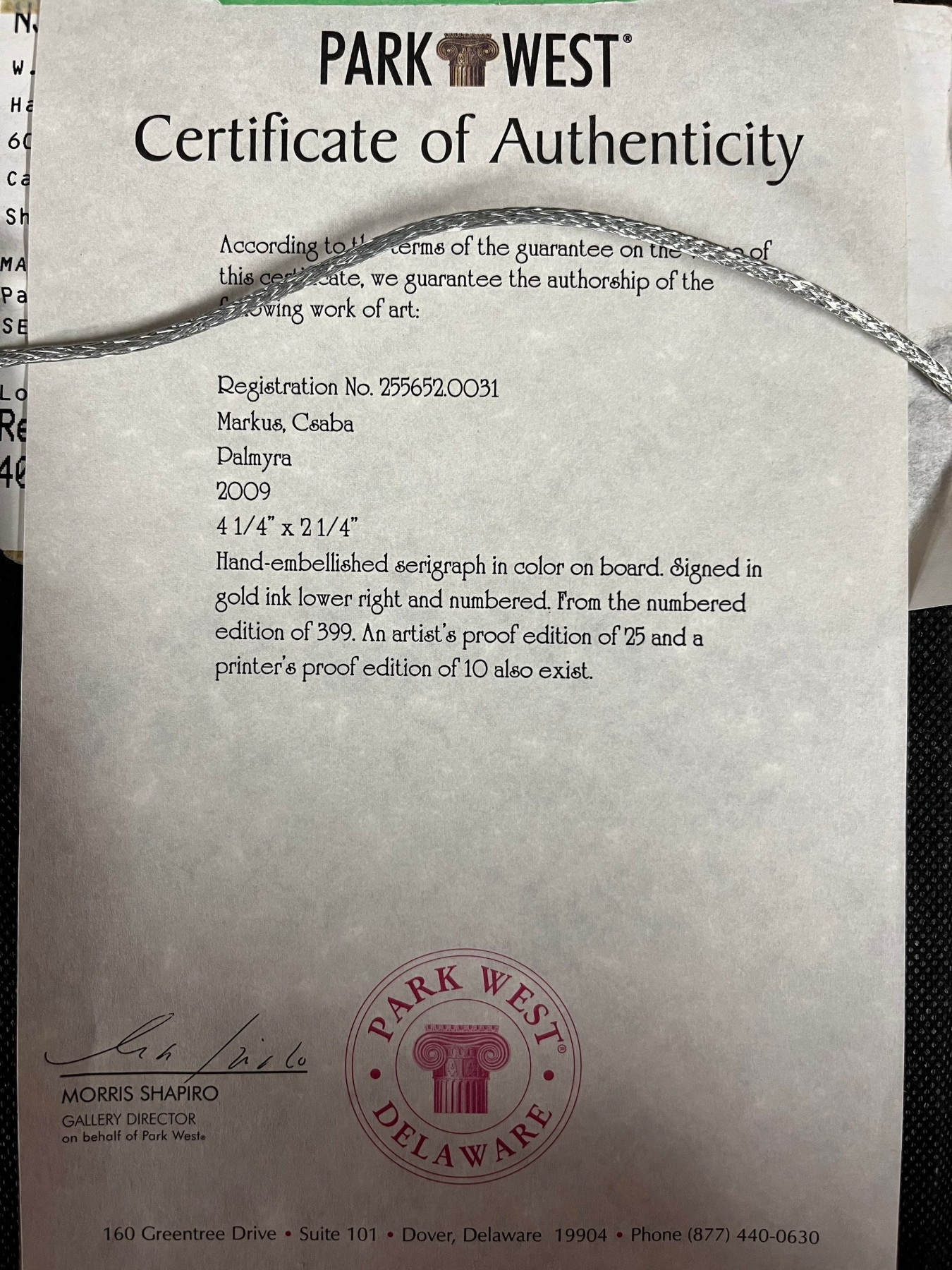 Csaba Markus Palmyra 2009 121/399 Hand Embellished Serigraph in Color . Signed In Gold Ink