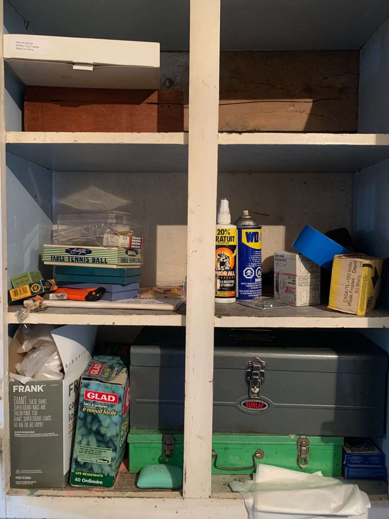 Cupboard Contents - Metal Tool Tote Fluids & more