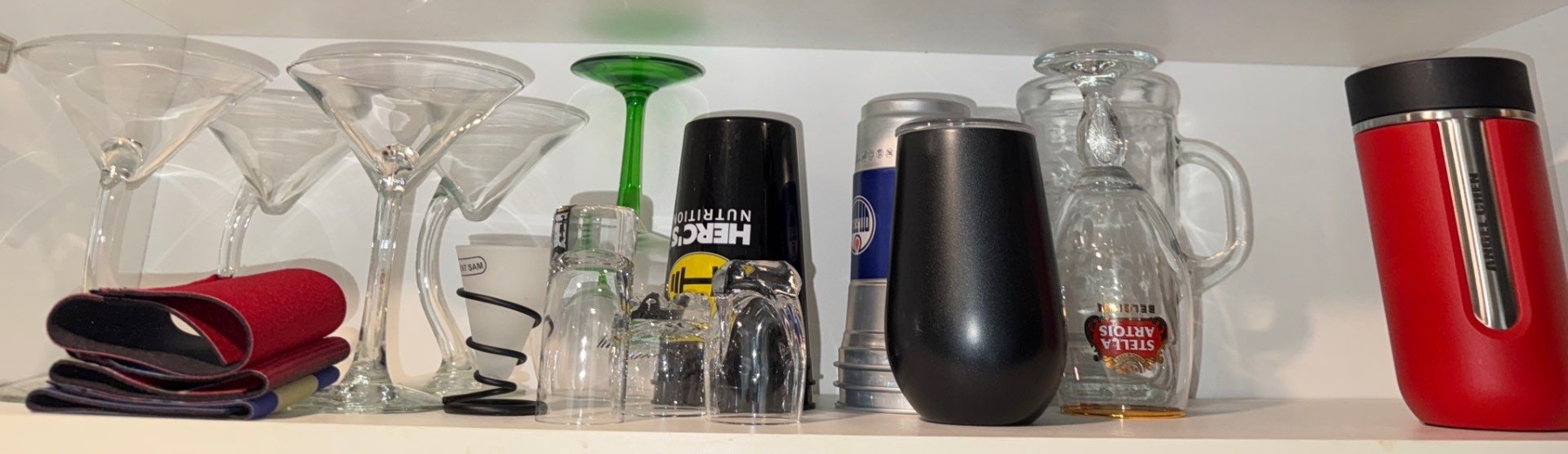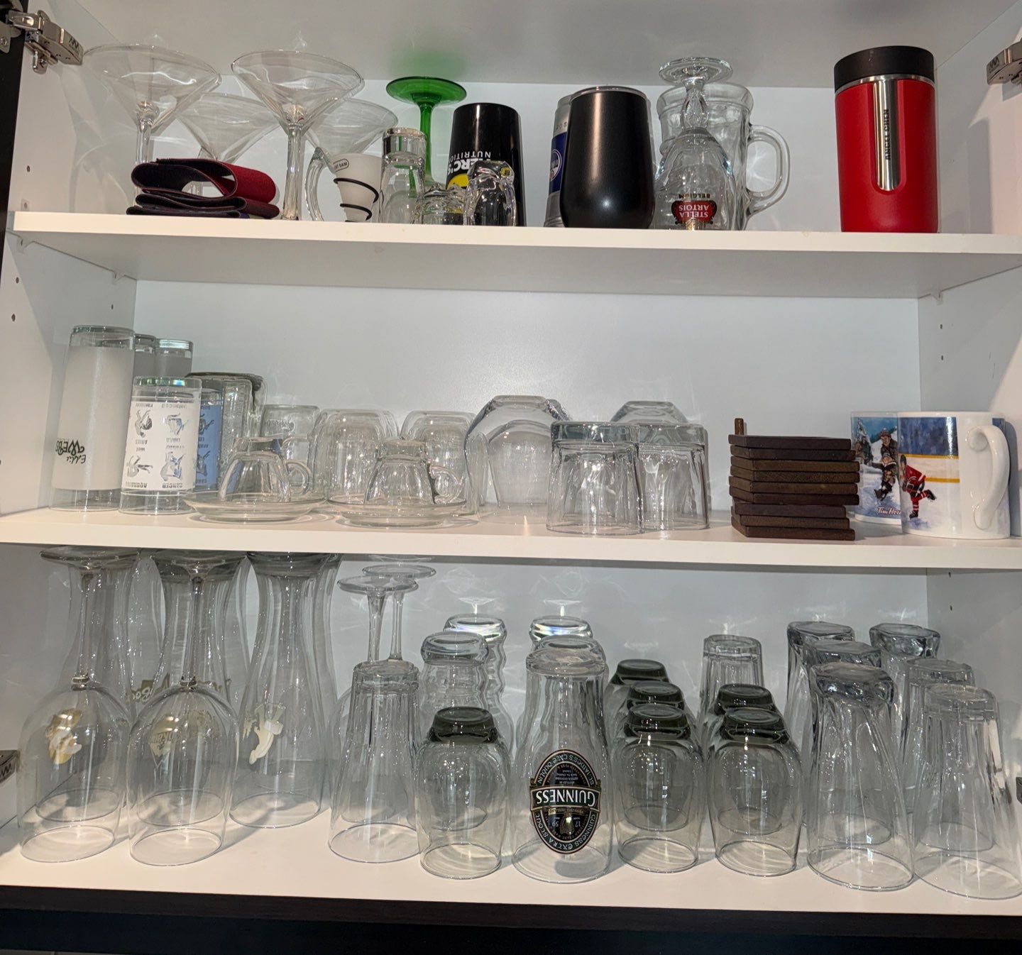 Cupboard Full Of Glassware For The Kitchen- Cups, Glasses, Mugs, Barware & More