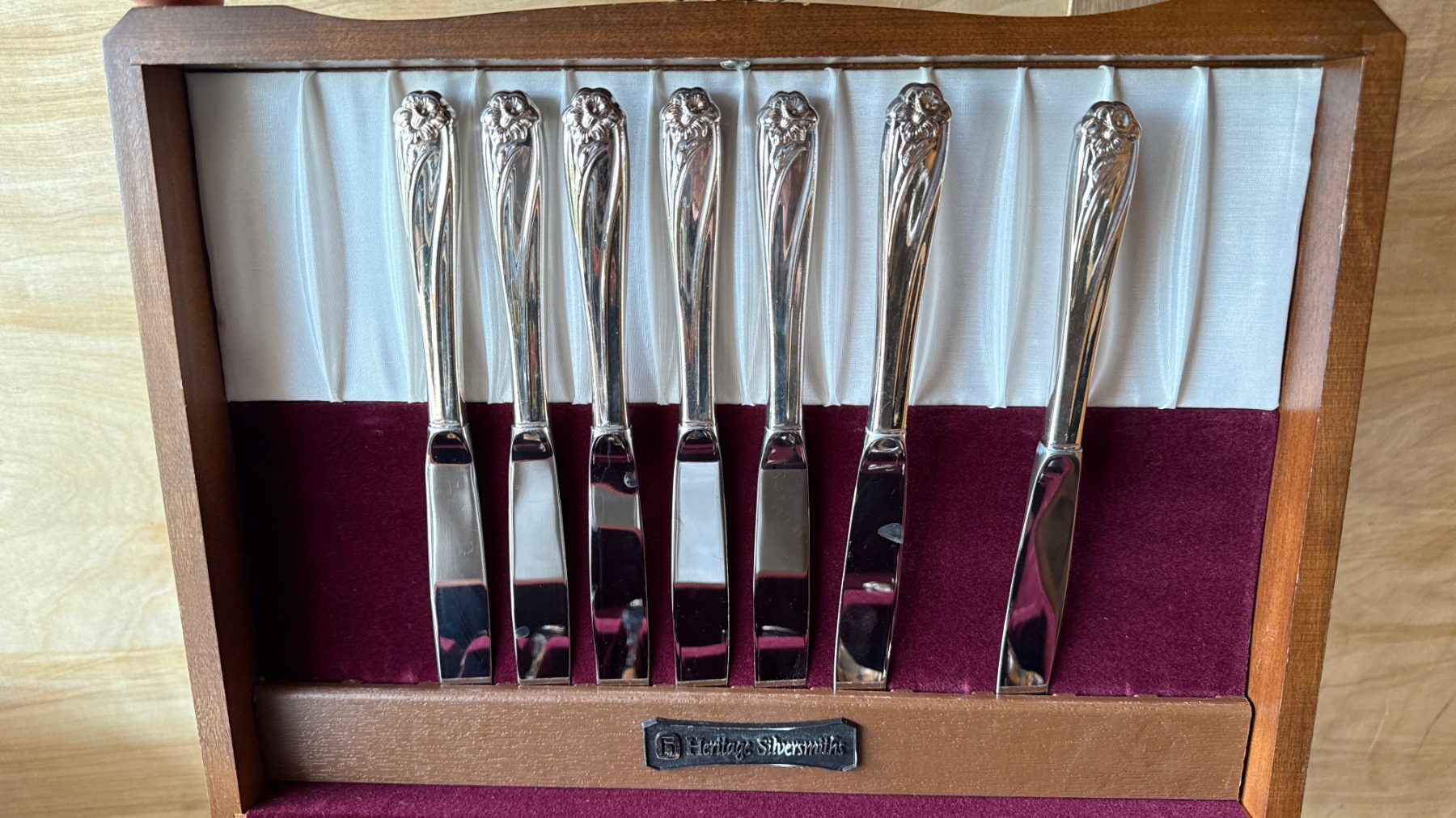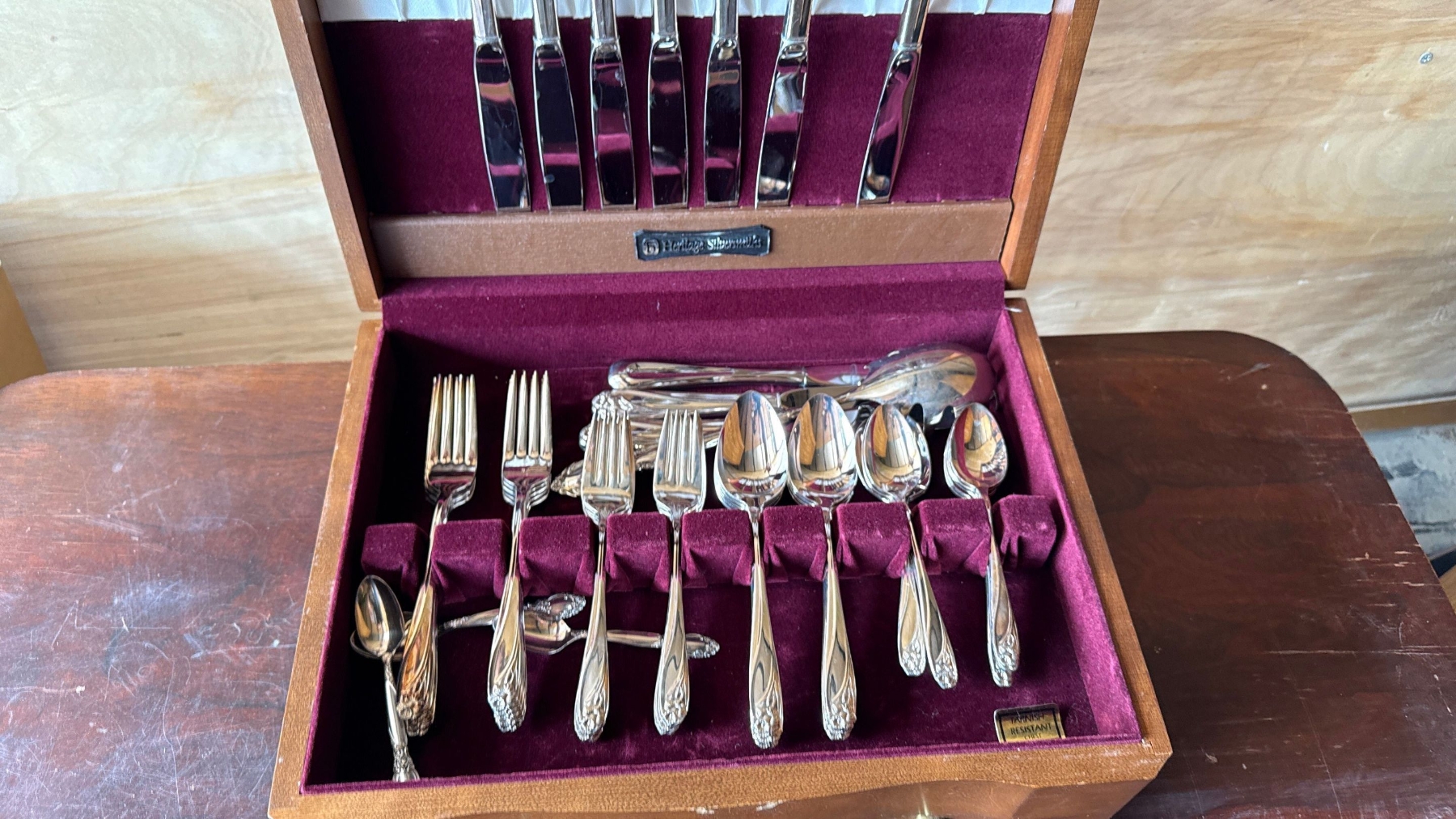 Cutlery Set Stamped As Brass in Purple Velvet Box