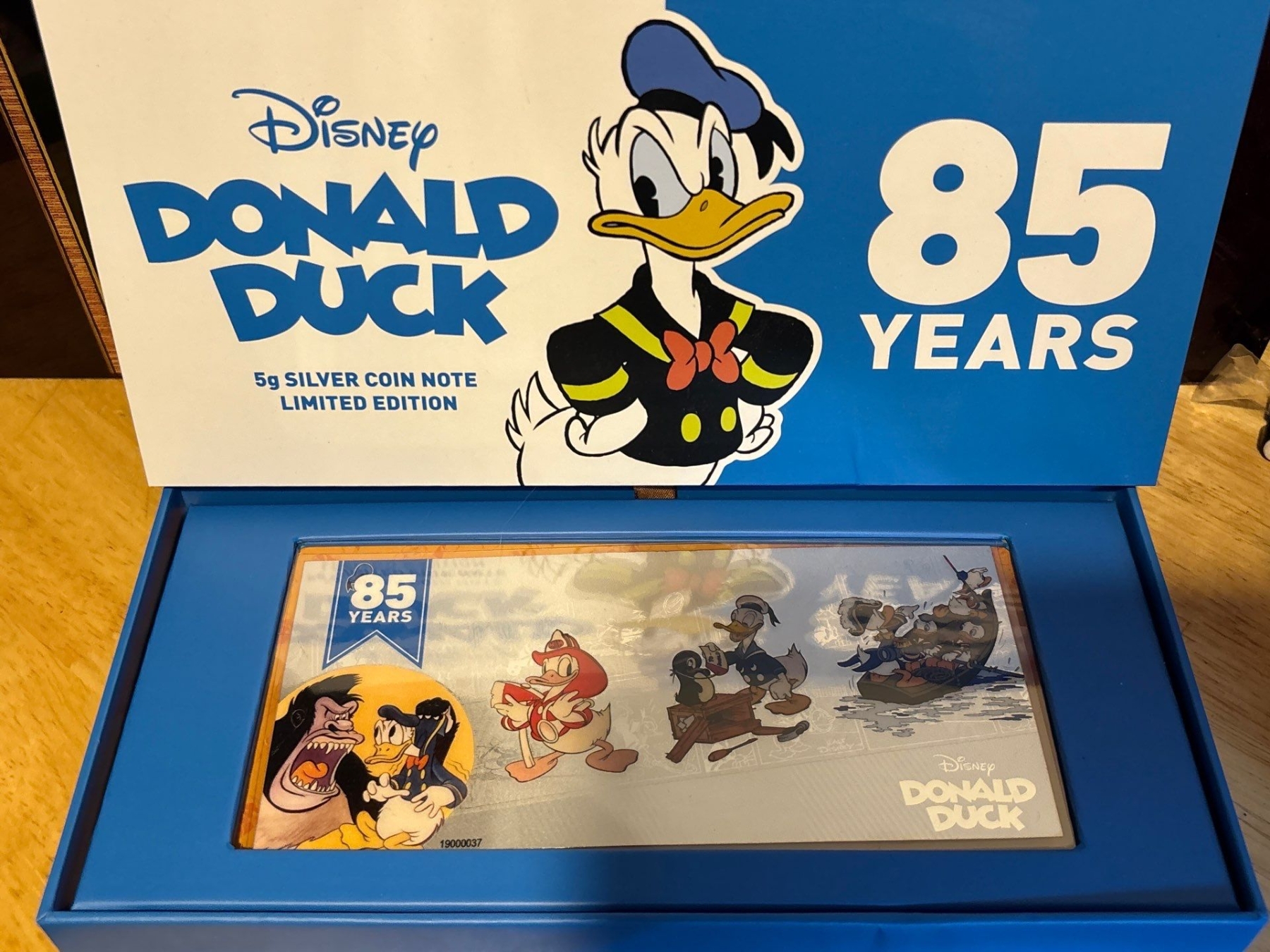 DONALD DUCK 85TH ANNIVERSARY – 2019 5 GRAMS $1 FINE SILVER BANK COIN NOTE – NIUE – NZ MINT