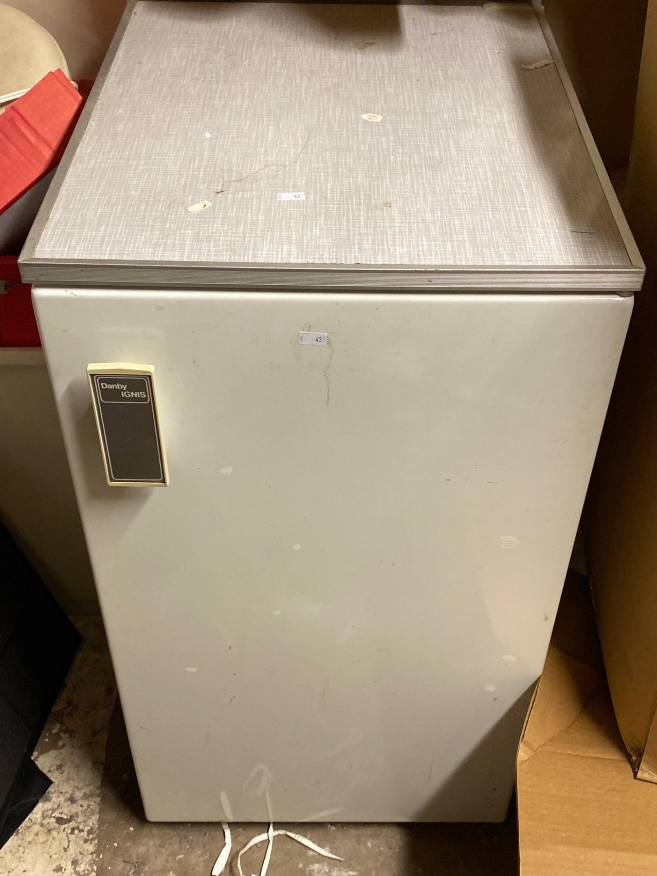 Danby small fridge. It’s 2 feet deep by 18 inches wide by 33 1/2 inches high fridge freezer combo works.