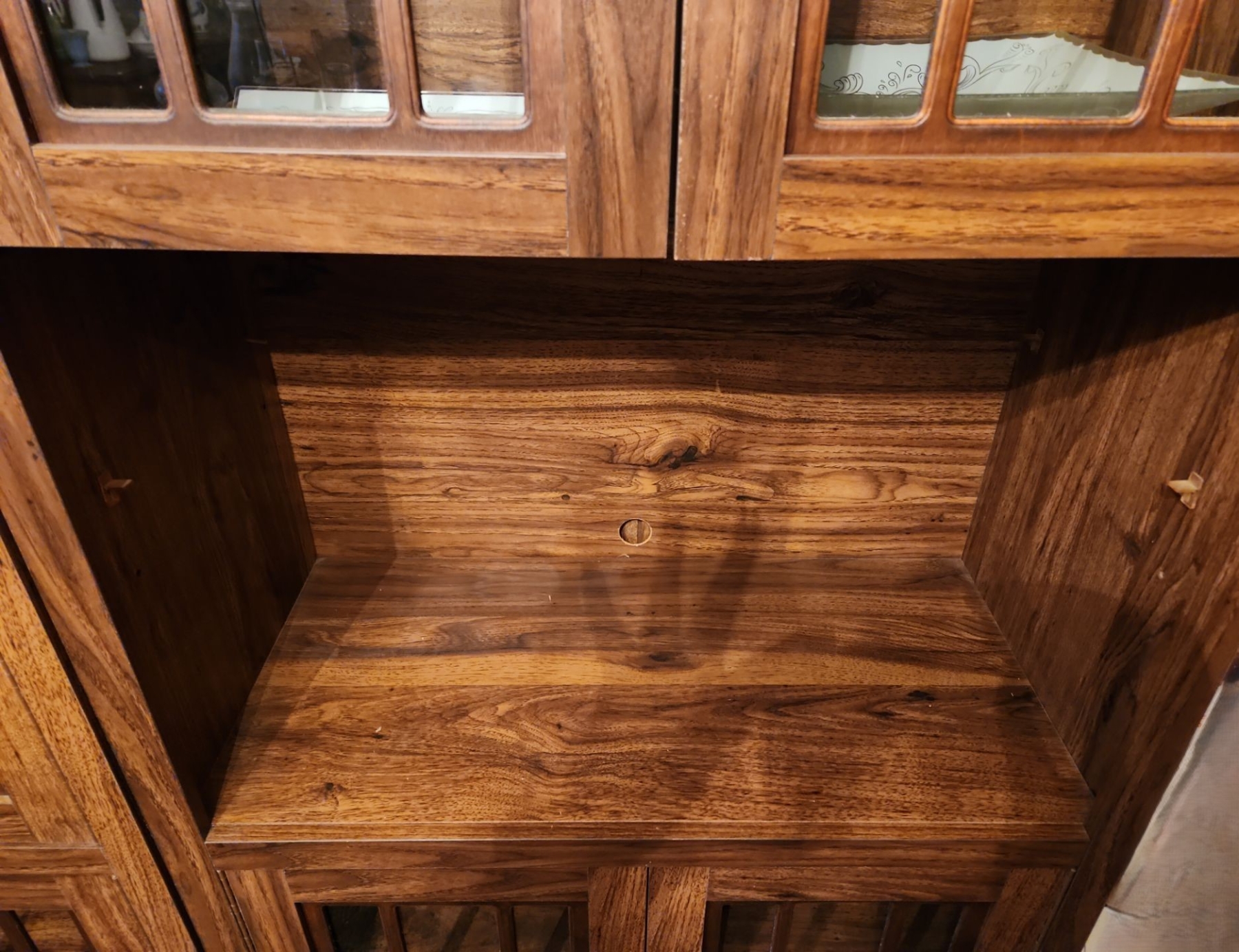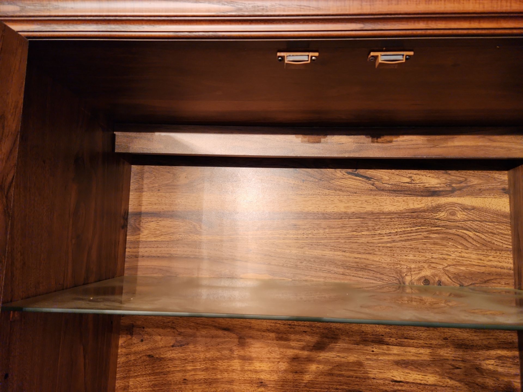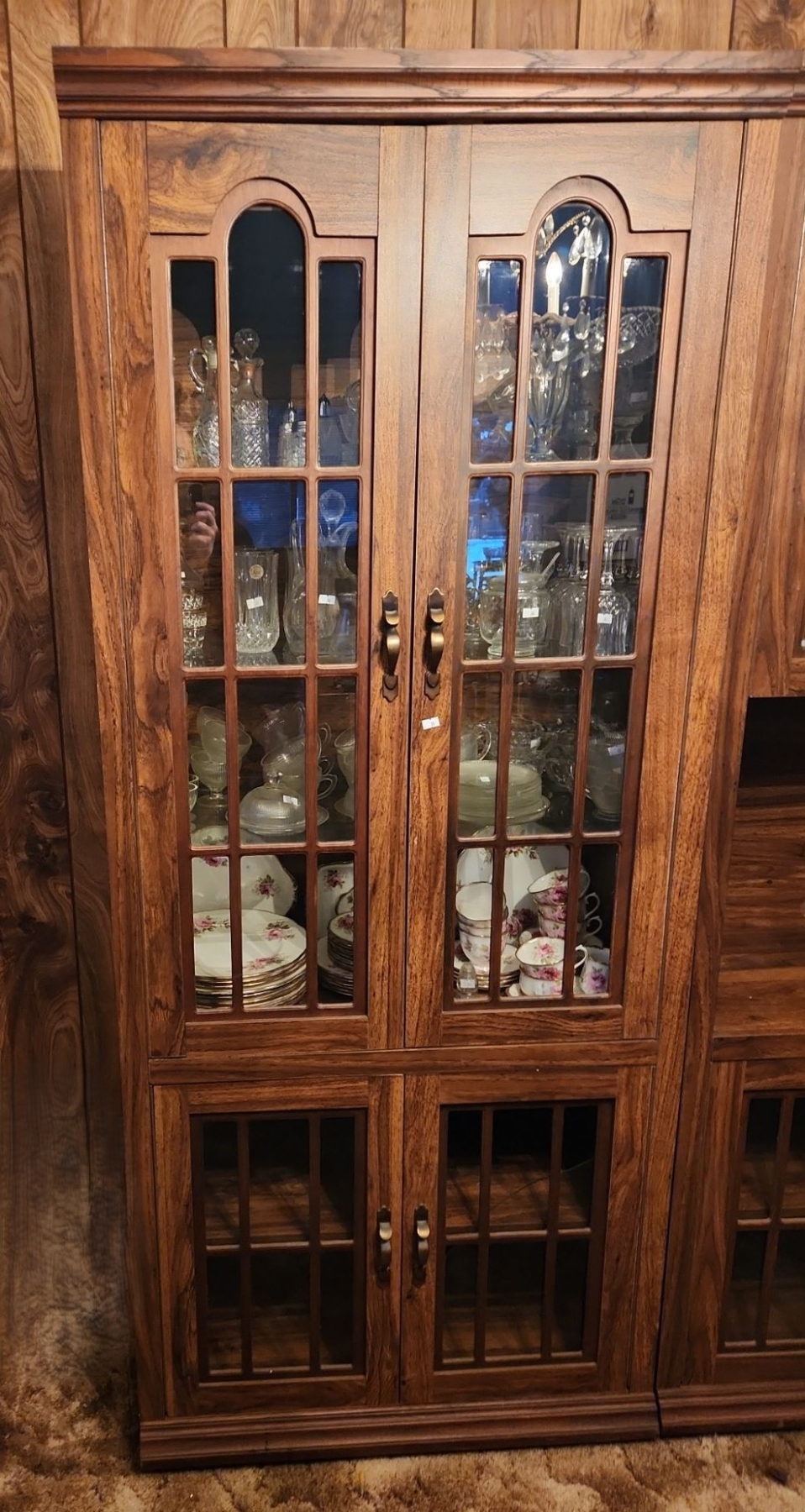 Middle Shelf Not Included from Open Piece, Some Scuffs, 1 Broken Glass Door, 2 Pieces Side by Side, Contents Not Included