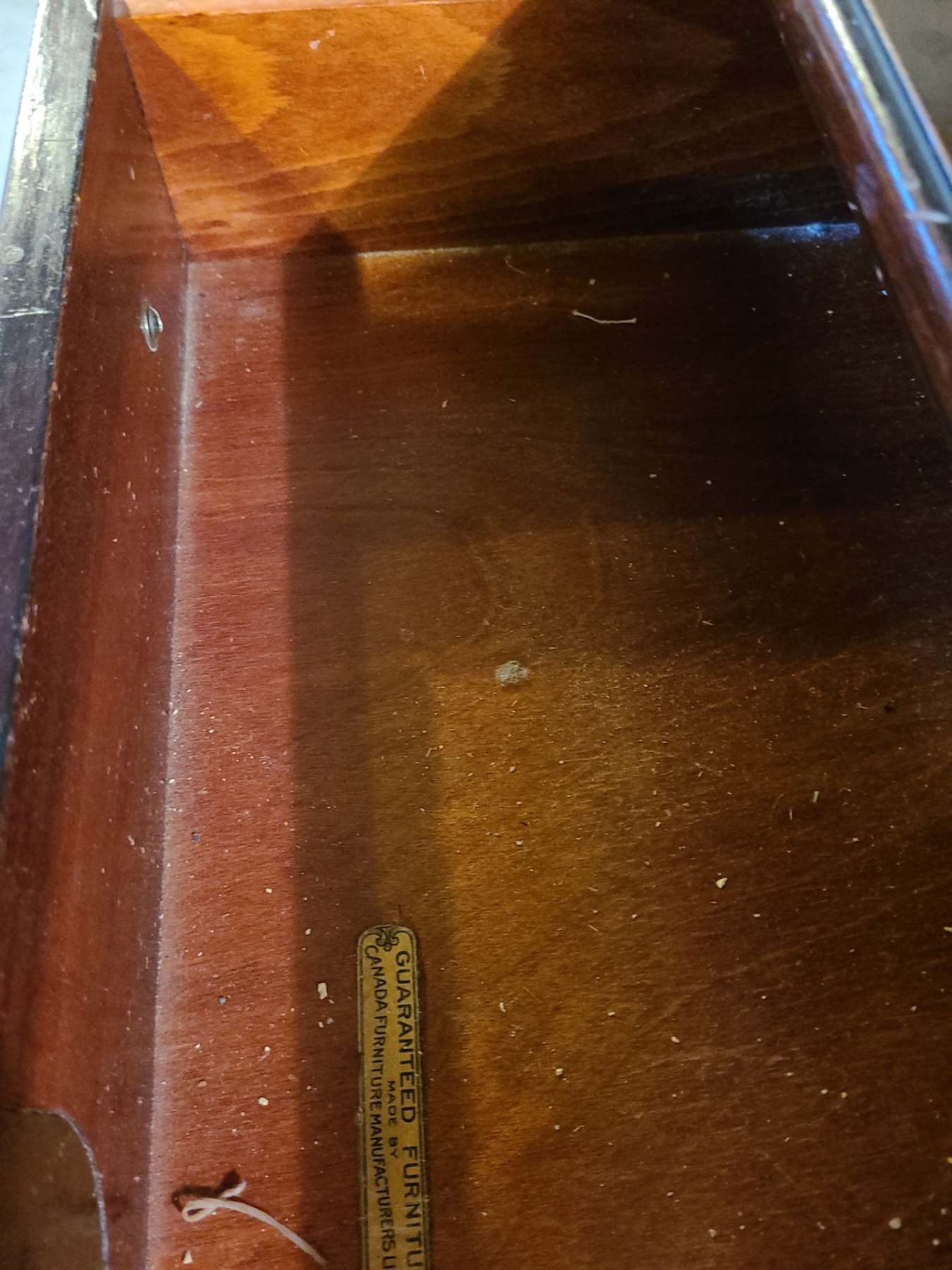 Dark Finish Wooden Dresser on Wheels 65 T, 53 L, 25 W, 2 Small / 2 Large Drawers, Mirror Included