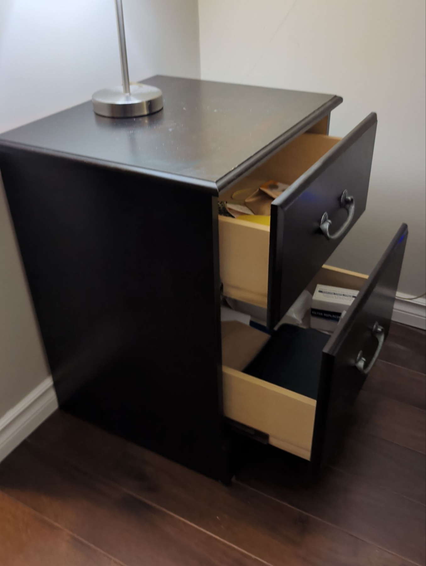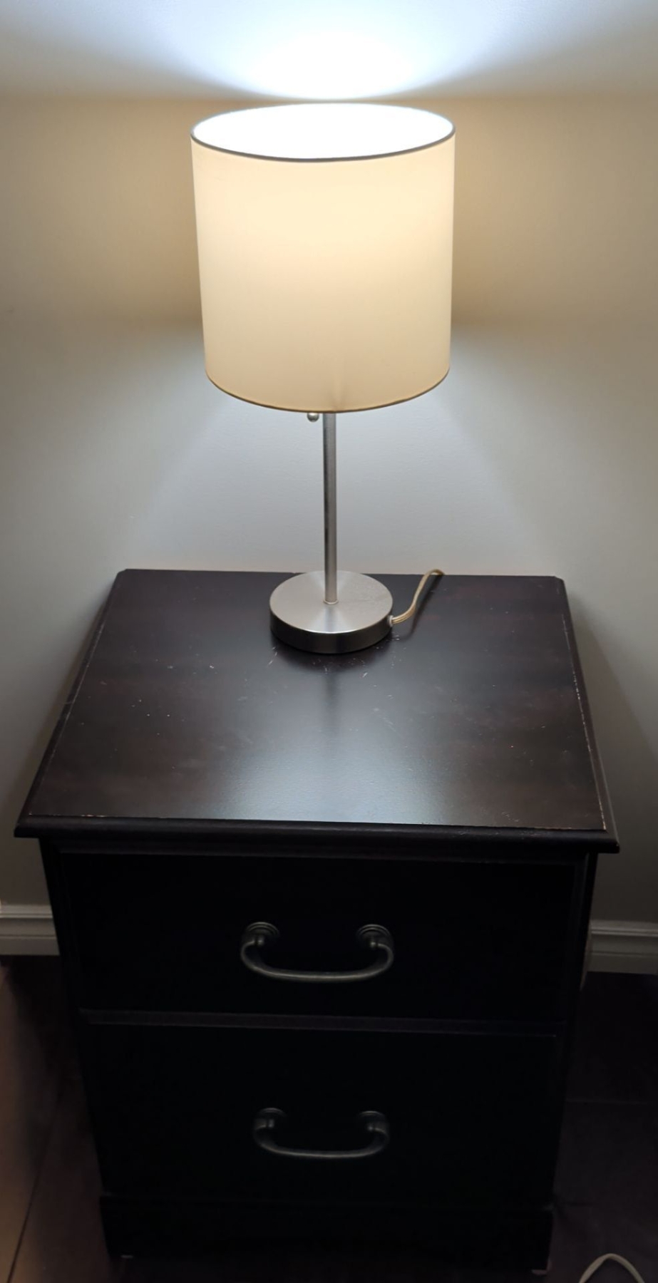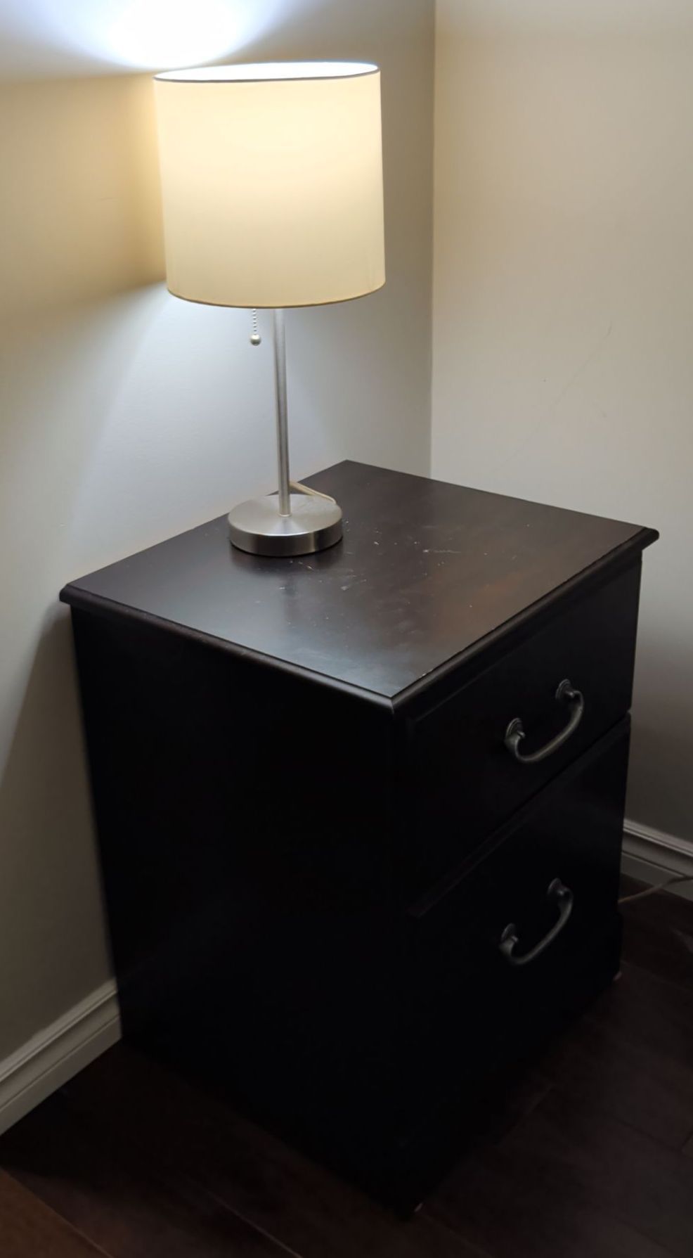 Dark Wood Side Table w/ Pull Chord Table Lamp 22x16x26