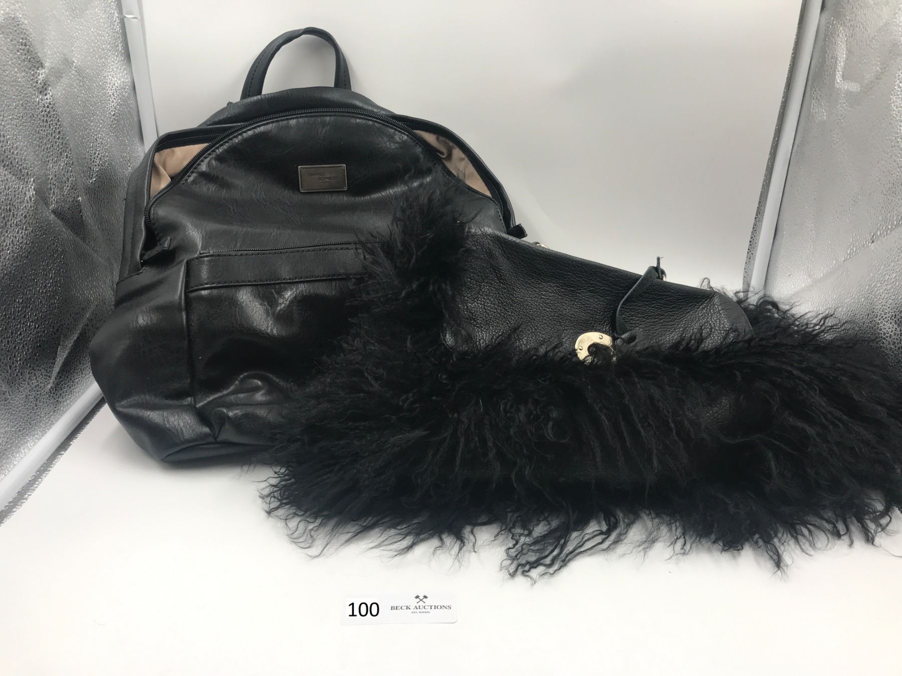 David Jones Black Backpack, and Aqua Madonna Faux Fur Handbag