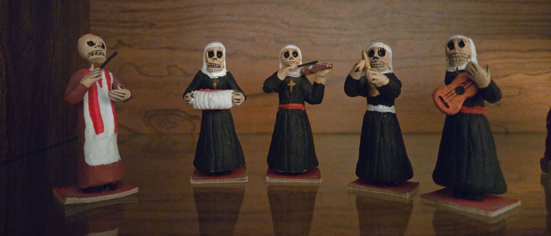 Day of the Dead Skeleton Nun & Priest Band Figurine Collection (2T Each)