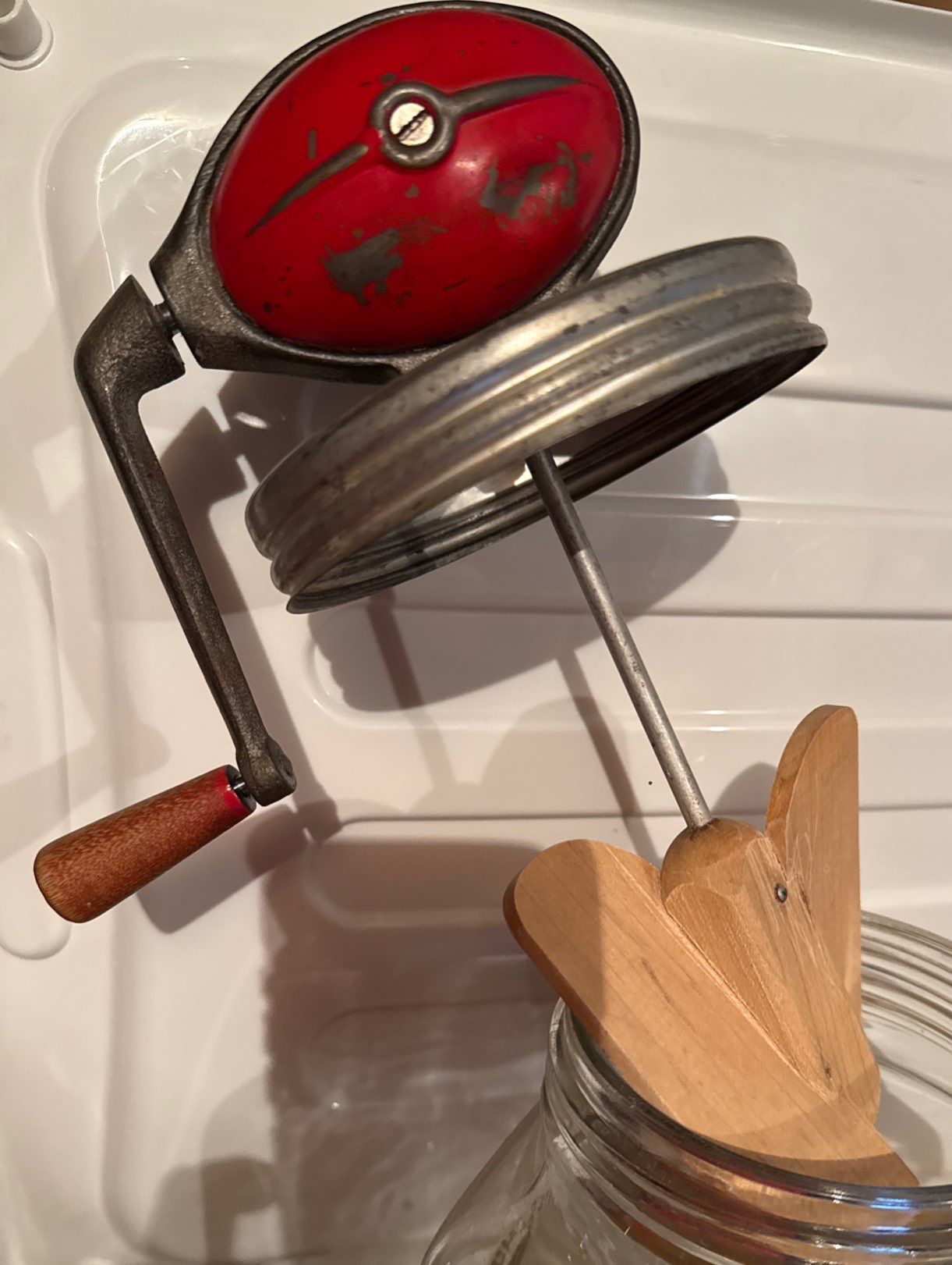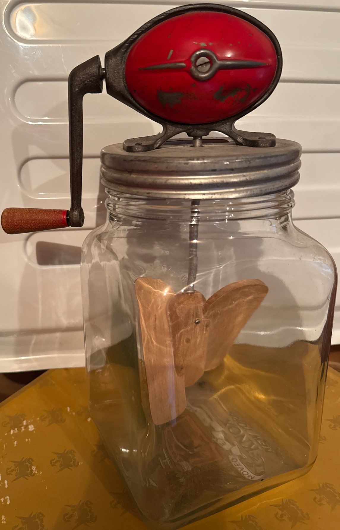 Dazey No.8 Hand Crank Butter Churn w/ Glass Jar & Beech Wood Paddles