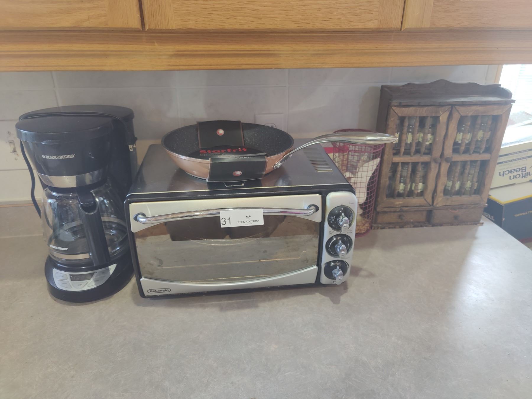 DeLonghi Toaster Oven - Starfrit Rock Frying Pan - Black & Decker Coffee Maker - Spice Rack