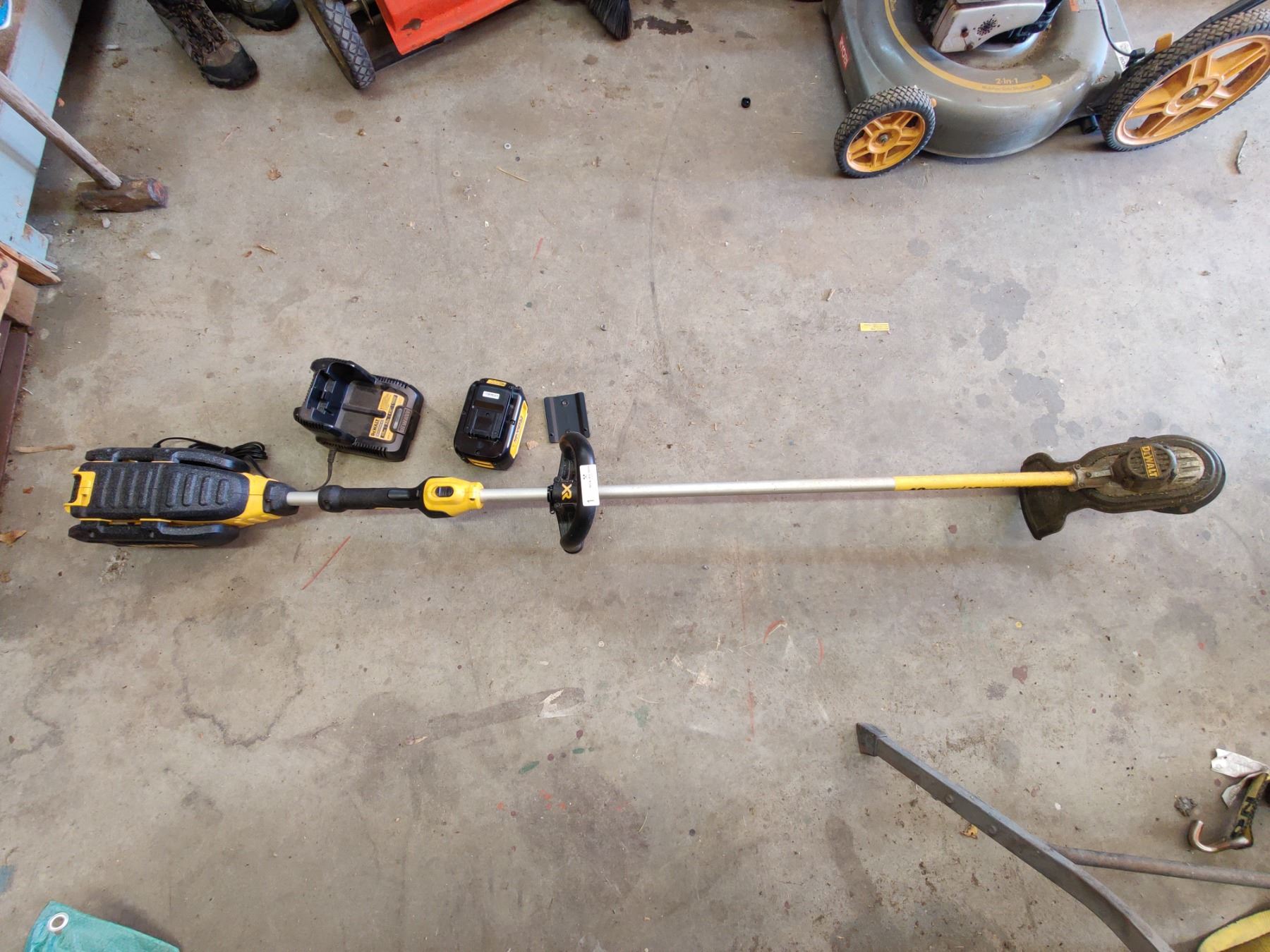 DeWalt DCST990 String Trimmer, DCB114 Battery charger, and DCB404 Battery pack
