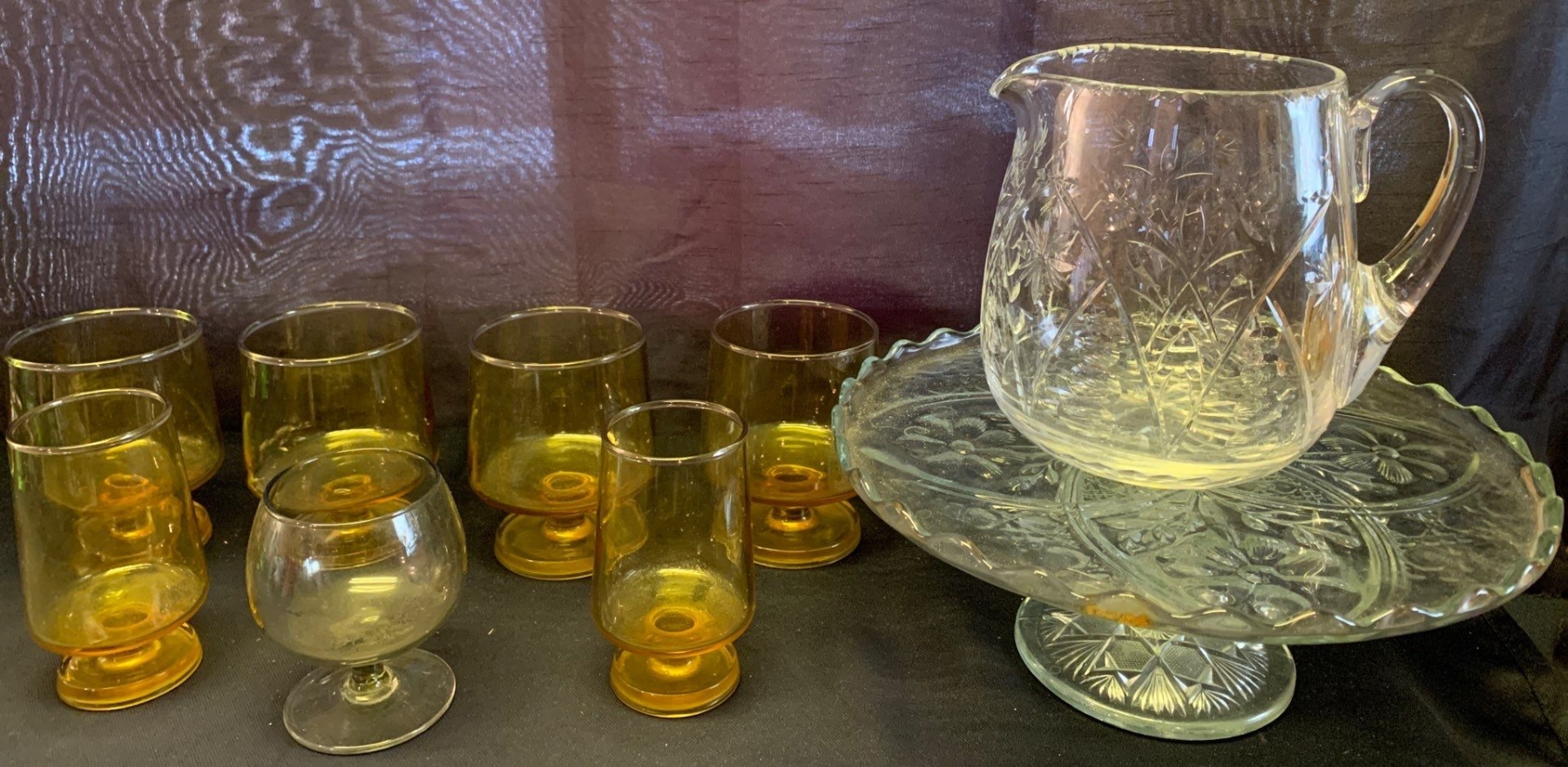 Decorative Amber Colored Stemware w/ Crystal Jug & More